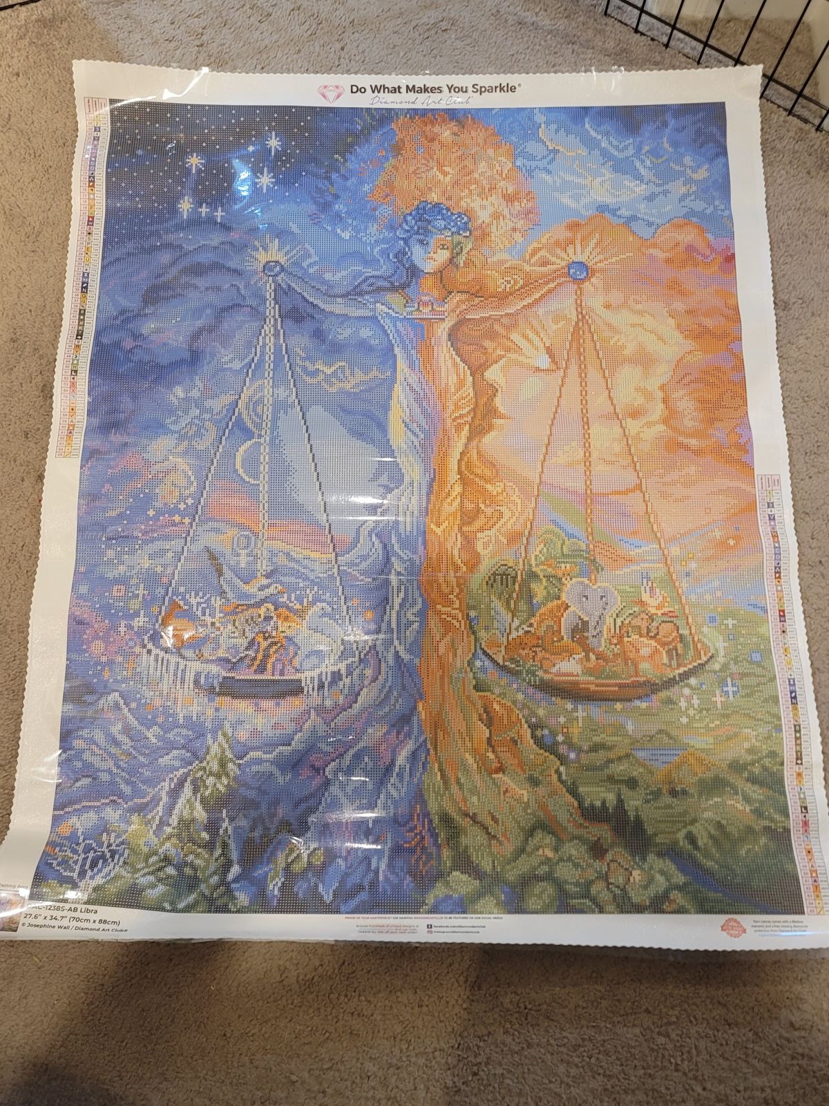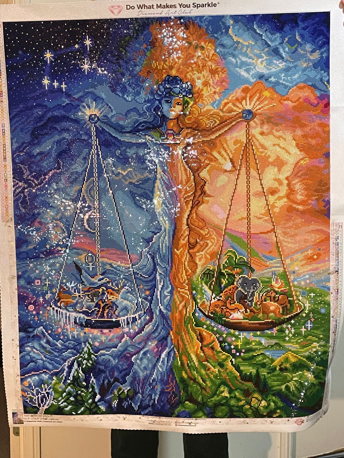 I have waited for this particular DP for over a year now. It’s the whole reason I joined DAC. I love this artist. The painting doesn’t disappoint wither. DAC does such a good job, it’s just a crying shame this artist is being discontinued. Anyway, the colors sparkle so nicely. I’ve got a corner done is all but I’m relishing the work. Mind you, I’m working on the painting from the top down so it’s upside down. And please excuse my messy video with a little bit of thumb showing.