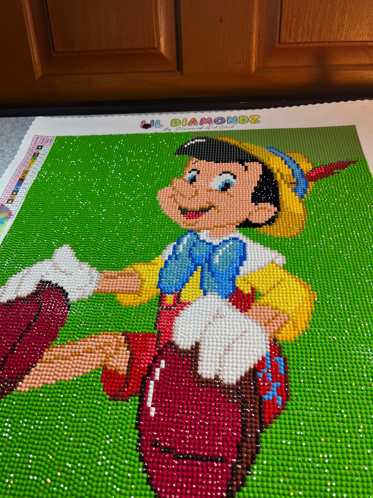 Diamond Painting Pinocchio 13" x 14" (33cm x 35.8cm) / Round with 18 Colors including 1 AB and 1 Fairy Dust Diamond / 15,600