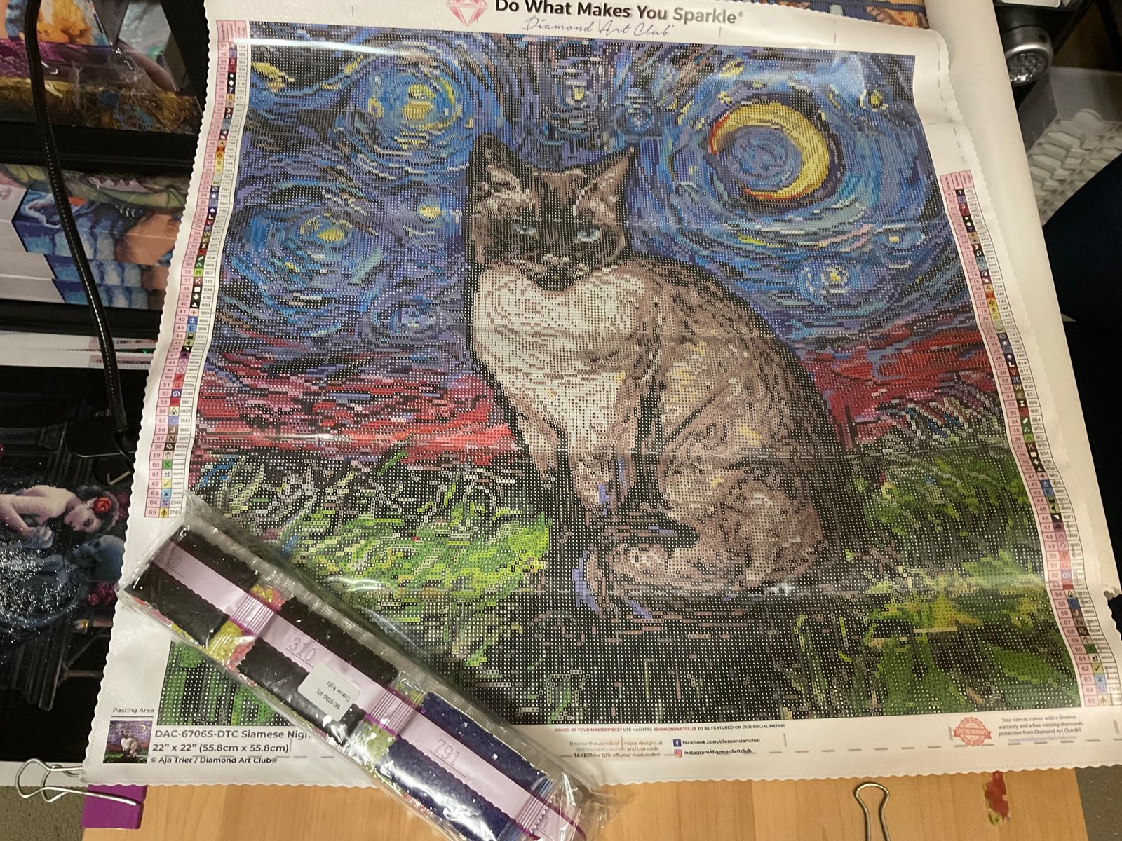 Just started this canvas and already I'm thrilled I chose it. Love Siamese canvases so this one was a very different take on the cat. Would love to see more Siamese !!!