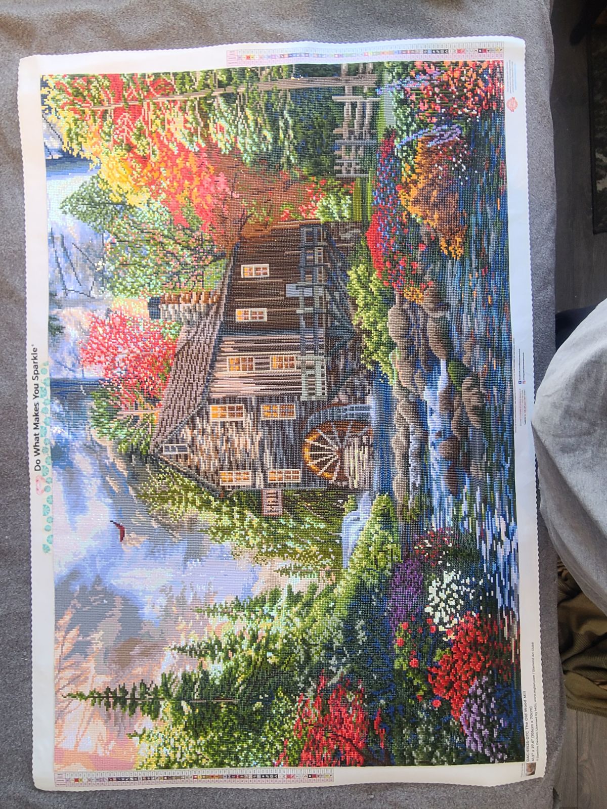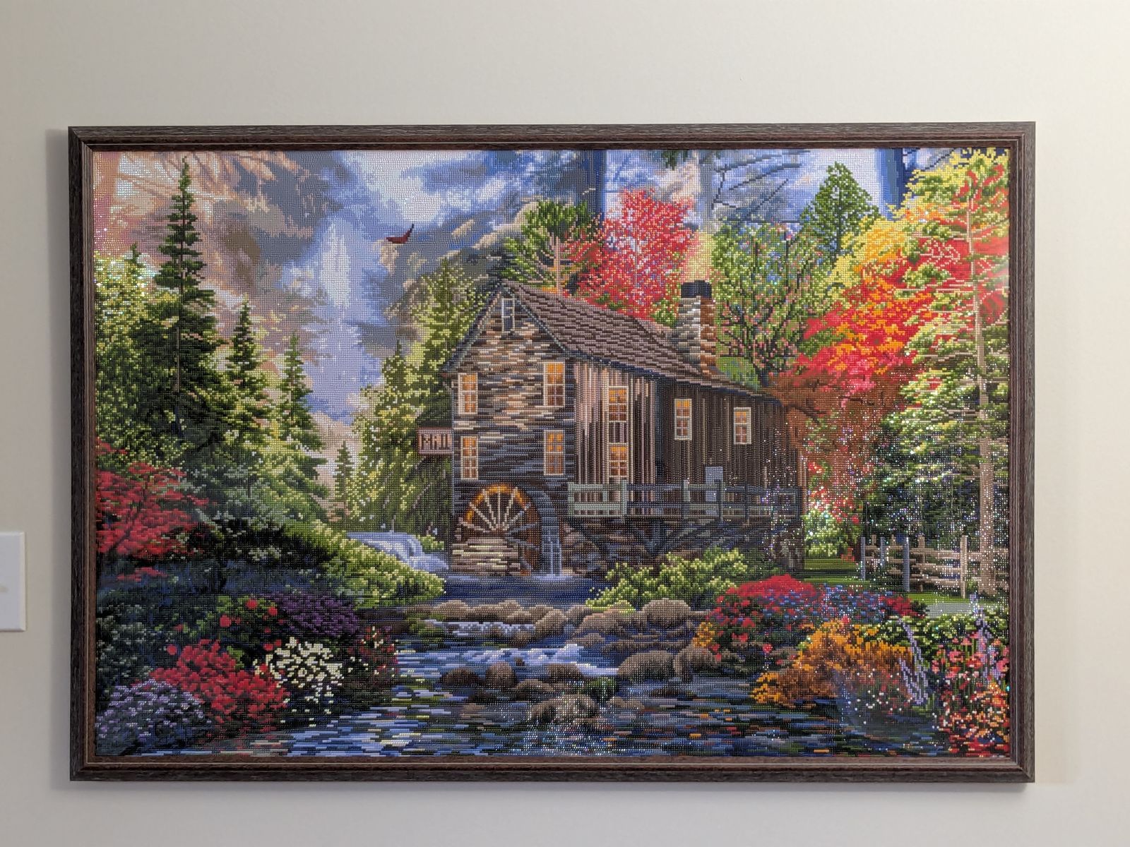I bought this canvas because it reminded me of the grist mill at Babcock State Park in West Virginia. I love the colors and look of the finished project.