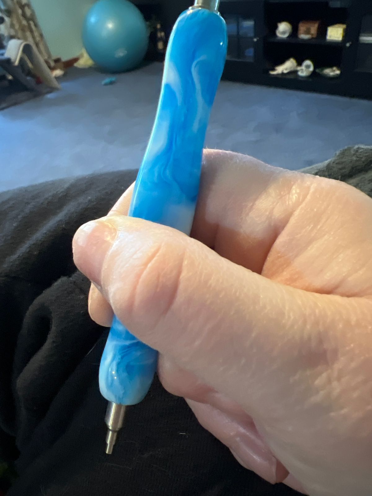I have big hands so using the skinny little drill pens can be uncomfortable -- even with added grips. I bought this strictly for the color and it was the best impulse buy ever! No more hand fatigue. My mother has arthritis in her hands and was struggling with the kit pen at a library program so I leant her my pen and she too said it was wonderful! If she ever takes this up regularly as well I will definitely be buying her one was well.