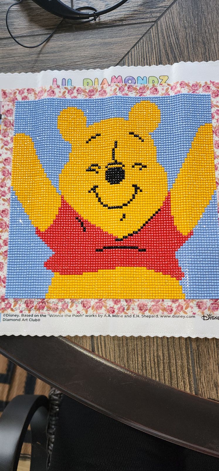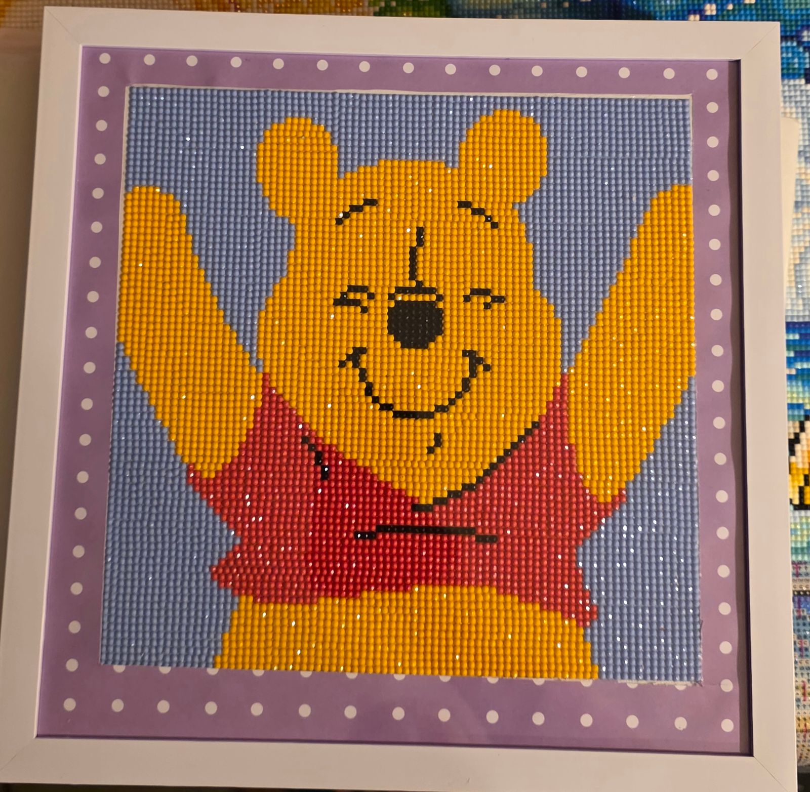 This Diamond Painting was so fun, easy, and fast to do. I did this one for a gift to someone's daughter who I used to nanny for. I used to nanny her father and I had free handed a portrait of him when he was a baby and I also did pointillism pictures of Tigger for him. Now his daughter has Winnie the Pooh in her bedroom.