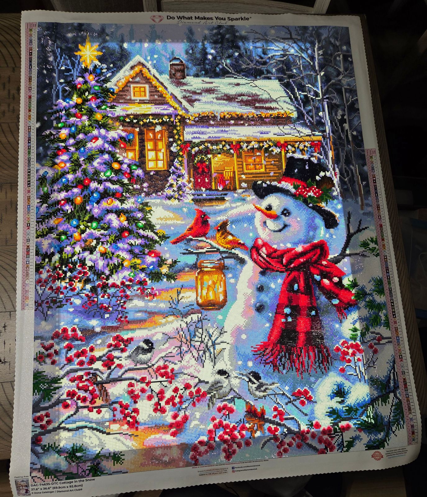 This piece I got a while ago knowing I wasn't going to start till November, took me from the 24th of Nov. to the 10th of Dec to finish and it is absolutely the best and most colorful Christmas piece I've done. 96 colors are seen in every angle, every sparkle, every diamond. Absolutely gorgeous. Was missing some diamonds so good thing I'm a hoarder with my left over ones. Lol.