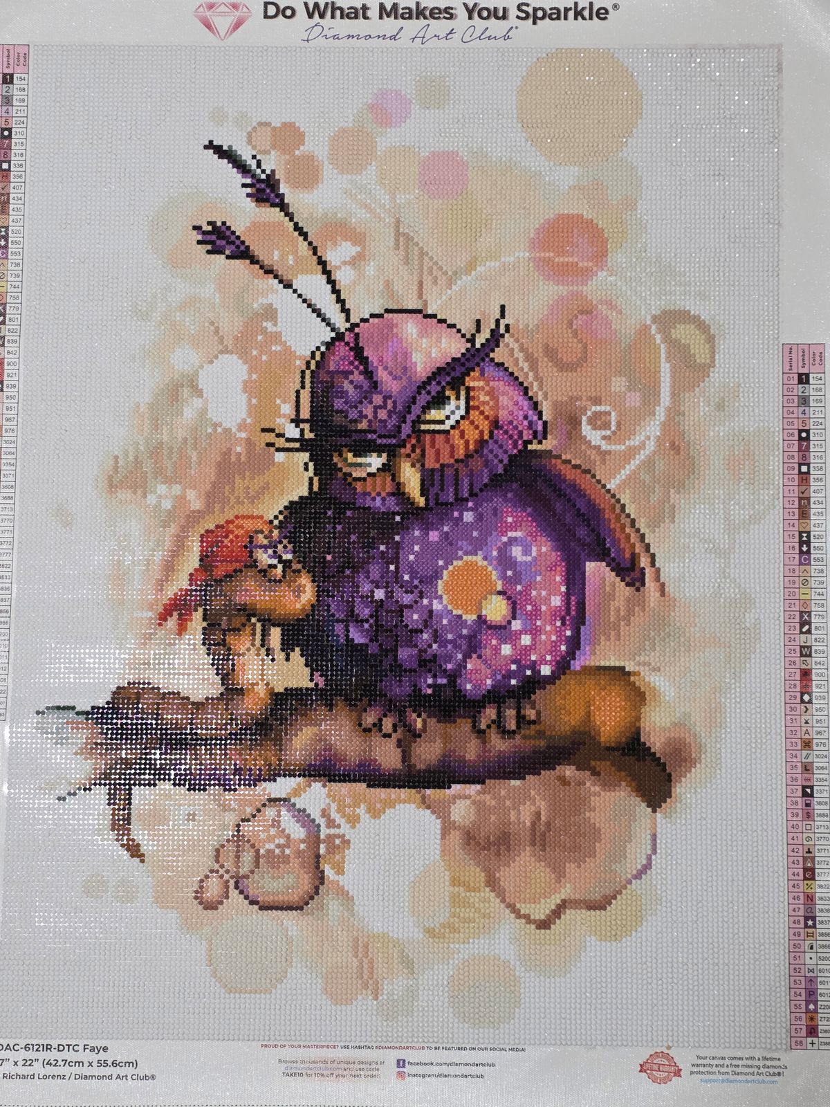 Although not quite snack-sized, Faye is on the smaller side of the kits offered by DAC and works up quickly and is beautiful. I was afraid the white background would be tedious, but there is more color variety than I realized with the peachy bubbles. Whether you're looking to add another Lorenz bird to your flock or looking for a good beginner kit, this one is a great choice.