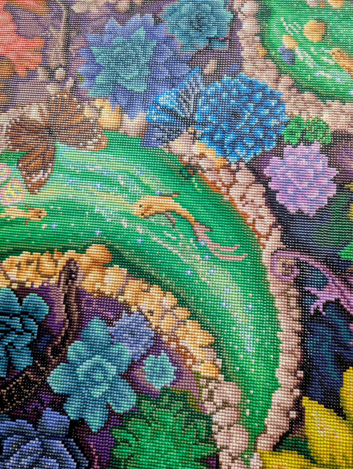 I felt this was going to be daunting, but it turned out fun. I enjoyed uncovering all the hidden treasures in this canvas! Green is my favorite color and this one did not disappoint! Would highly recommend this lovely little secret garden!