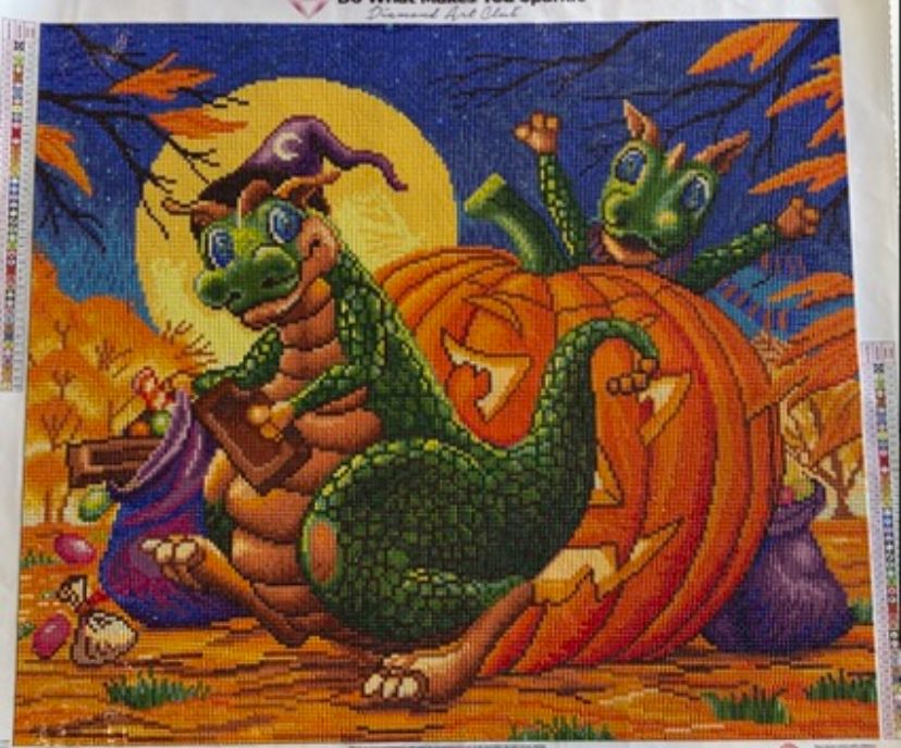 Fun and cute Spangler draglings for Halloween. This was delightful to work on from start to finish, with nice shading and vibrant colours. Loved the inclusion of AB drills, too.