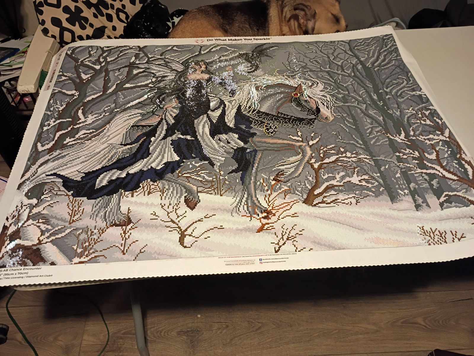 Loved this image and the monochromatic scheme, but found it a little bit off. Keep in mind, this was released before DAC began making their own drill colors, and I think if recharted they could do amazing with this with all the new greys they now have. I added a bunch of enhancements - crystals, dust, metallic - and I'm happy with the image overall ... just wish there were more grey values between the background and the fairy/horse/dragon.