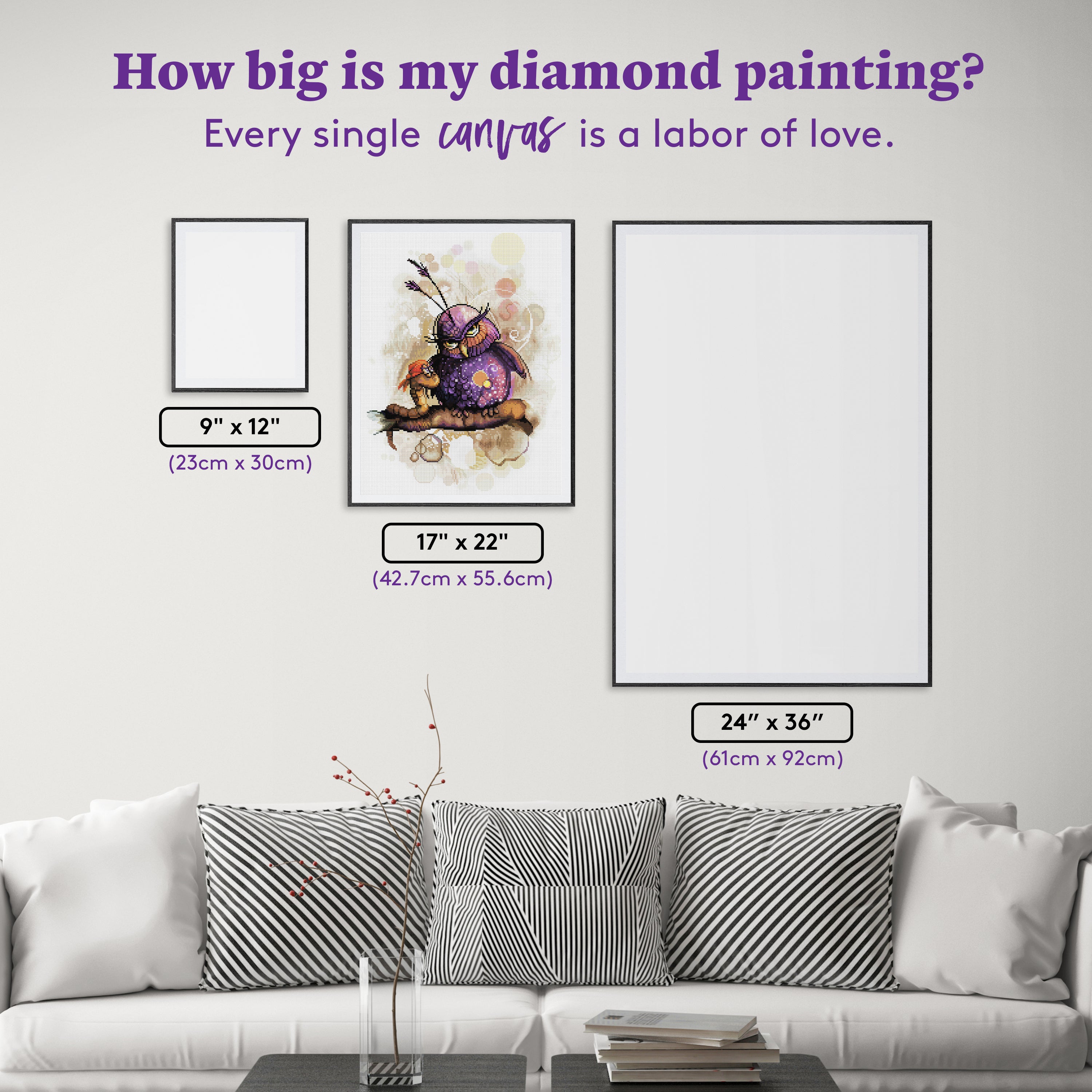Perch on the edge of humor with a glittering purple owl and a bold little worm. Exchange stares sharper than talons as mischief meets defiance in a showdown too funny to resist.