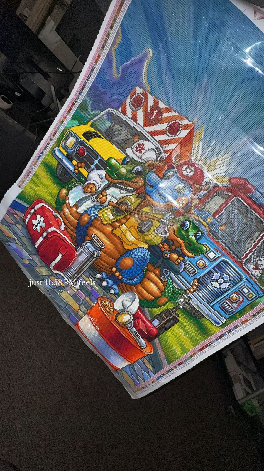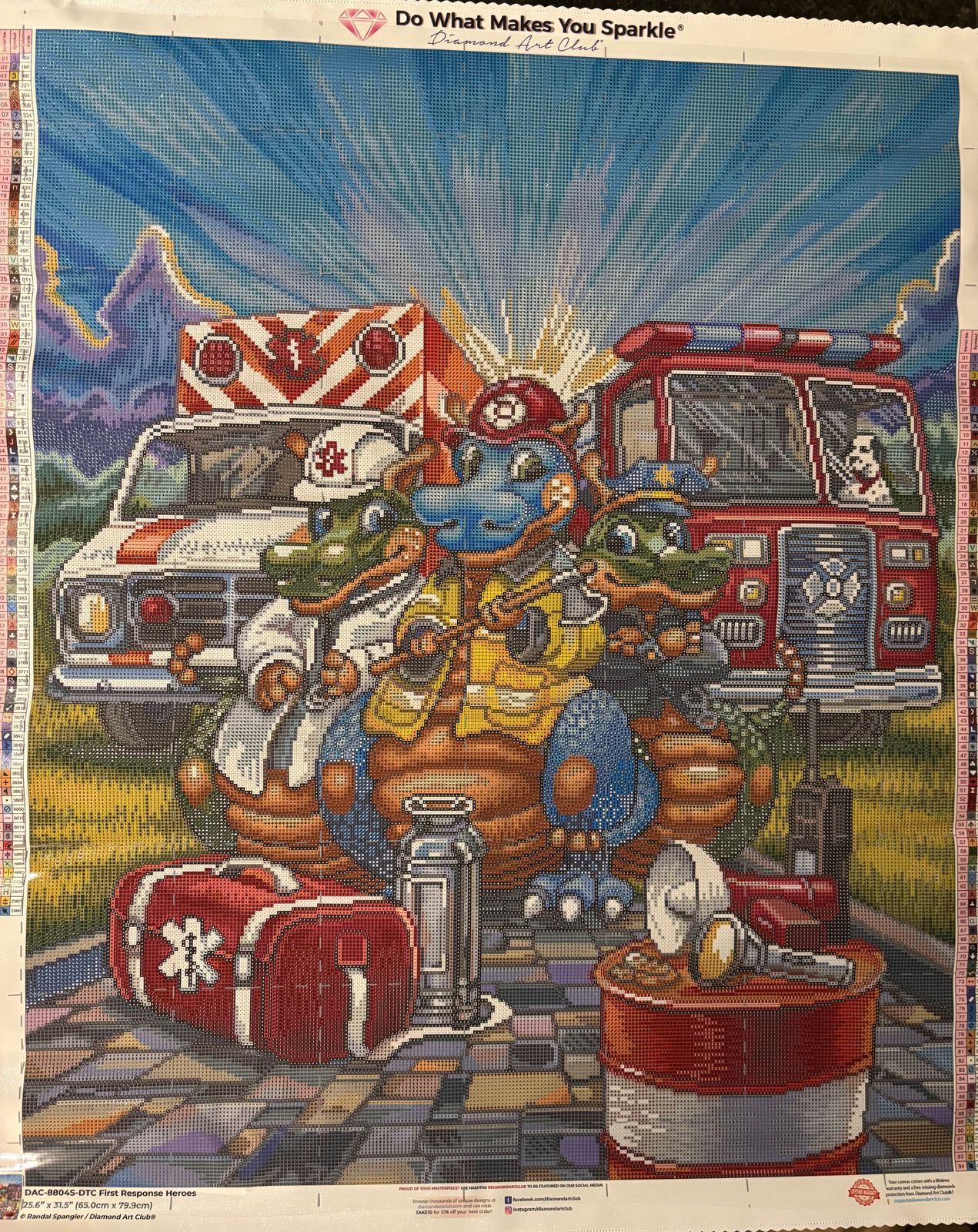 Currently working on this piece to hang up at my work where we dispatch! I changed to the colors to our local fire department colors! Lots of colors to work with so it can make it difficult but I am really enjoying this piece!