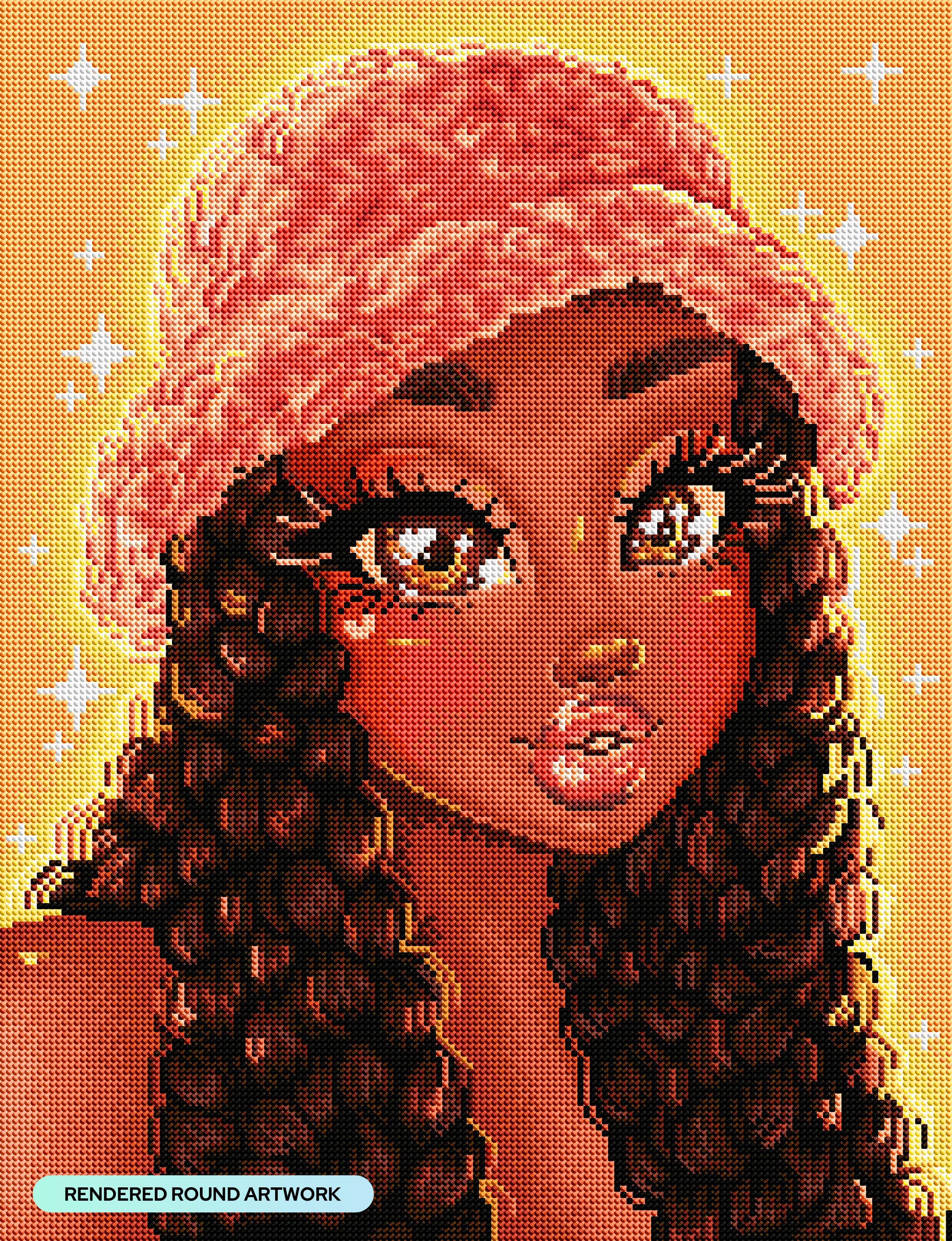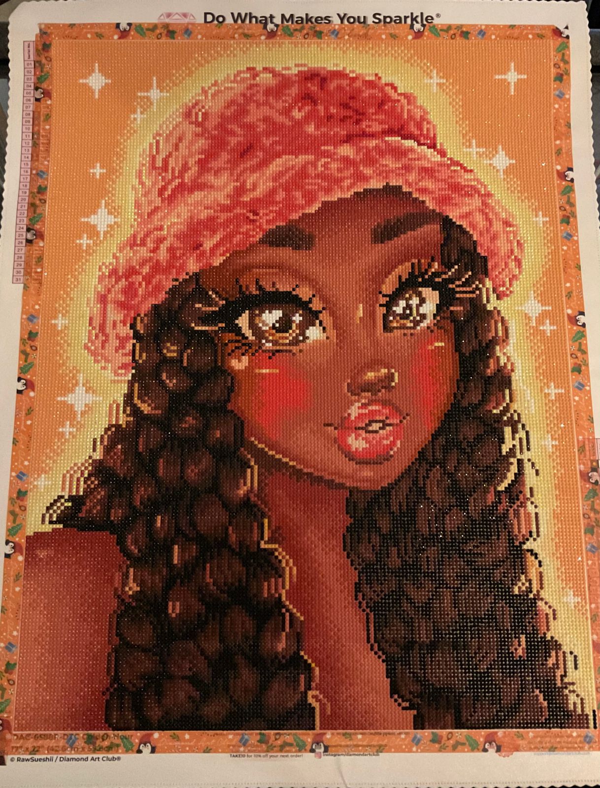 This kit was quick to work up, the rendering of the hat really comes off as yarn. Some of the drill colors were a little trashy, but there were plenty of drills for each color so no danger or running out.