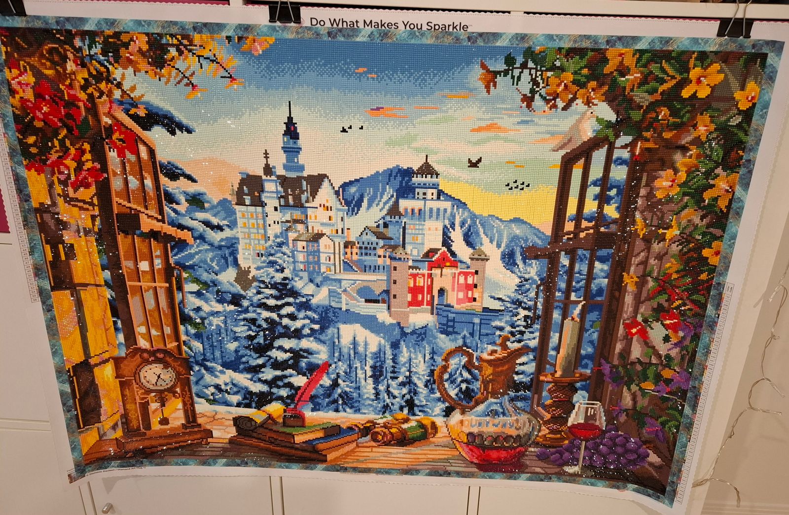 This is the most beautiful 😍 diamond art I have done. The colors are so glittery and vibrant and the diamonds are just so nice. First time ever doing sqare diamonds. Absolutely love this I grew up in Germany and I have actually been inside this castle. Took a couple about 2 months to finish but so worth it!! Love it ❤️❤️❤️