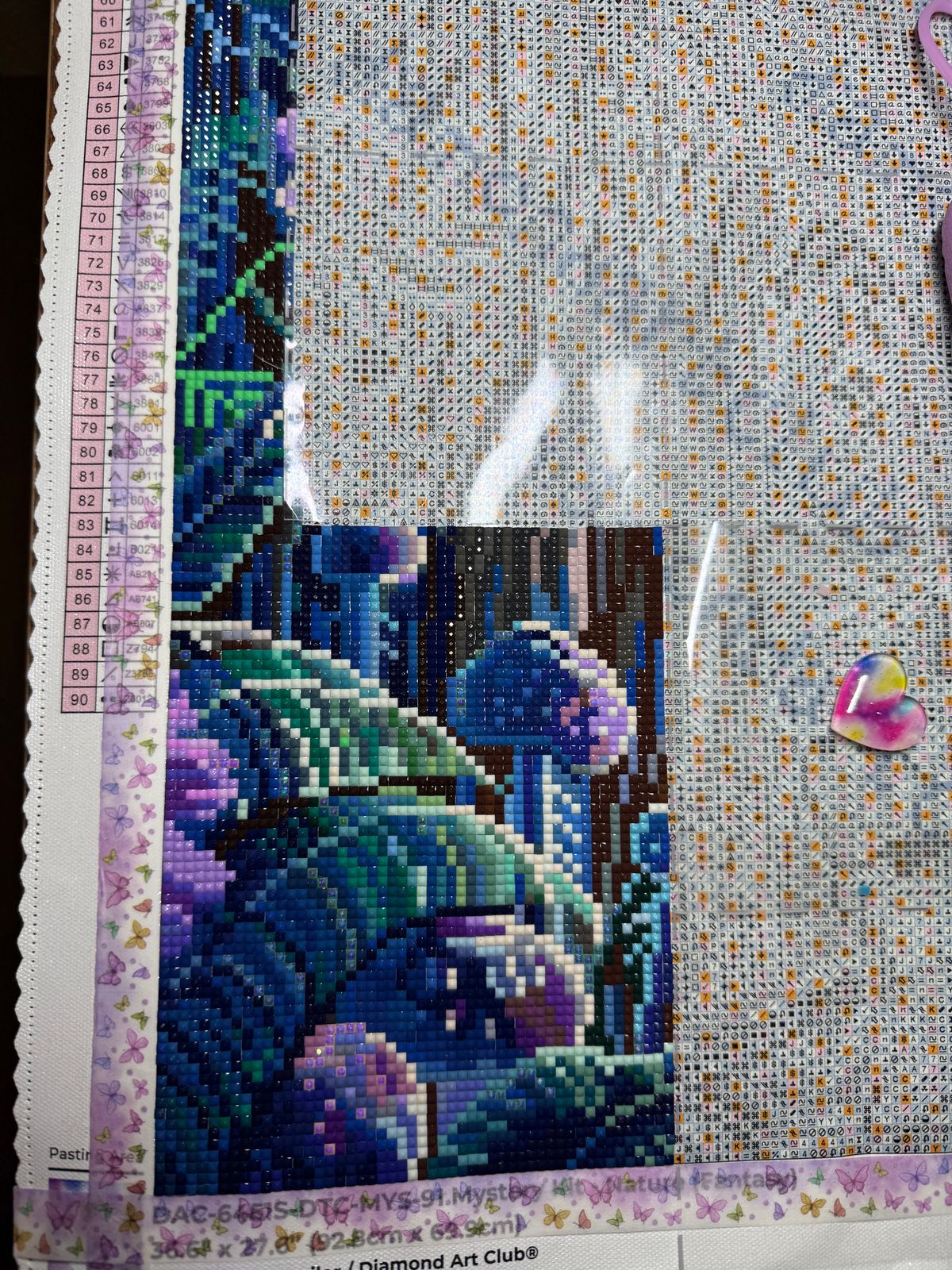 This was my very first Mystery Kit so I didn’t know what to expect. I was semi familiar with the artist so I knew I would probably be okay with whatever the picture was. When I unboxed the canvas and seen the color palette I was thrilled! Beautiful purples and blues to name a few. This canvas was so much fun to do and I had the best time watching it come alive section by section. I’m not one to cheat to see what the picture is bcz I truly enjoy the process and mystery of it all. It turned out beautifully! 10/10!! I think I may be a Mystery Kit kind of girl now lol This canvas is really well designed and contains great quality products. I’ve included a photo that only has a tiny snippet from this spectacular portrait bcz it is a mystery I do not want to give it away 😊 I loved this so much!!