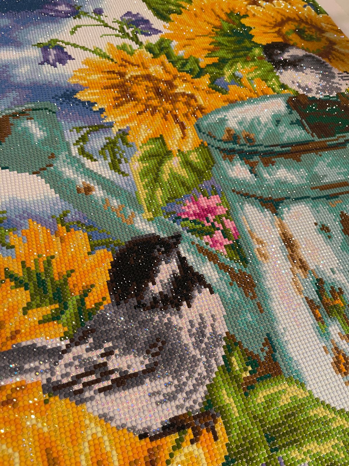 This was a joy to complete. I love sunflowers and they came alive in this piece. The frame made all the difference.