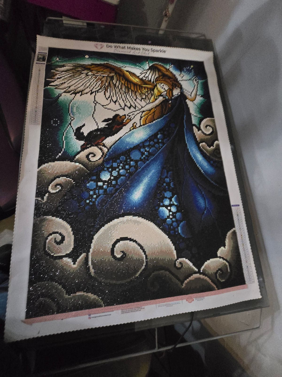 My dog recently passed and when I seen this painting I had to buy it and do it! I just started a few days ago so I only have a few sections done but it’s so beautiful I can’t wait to finish it.