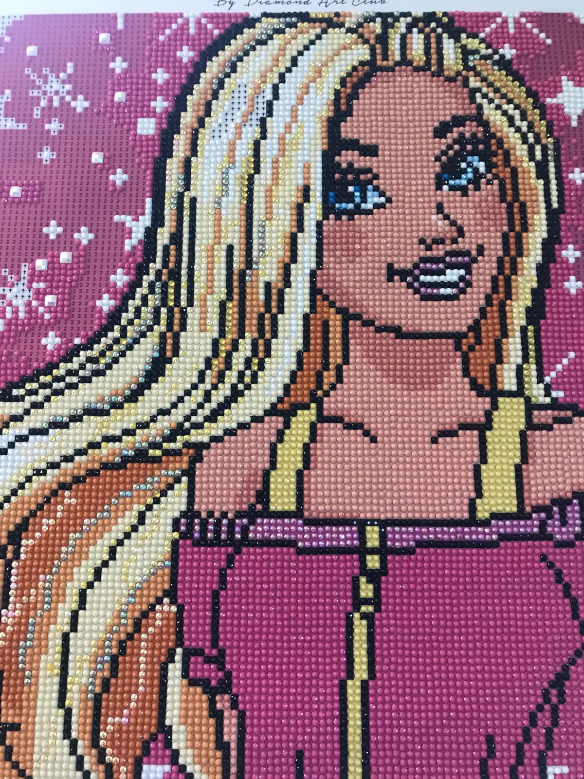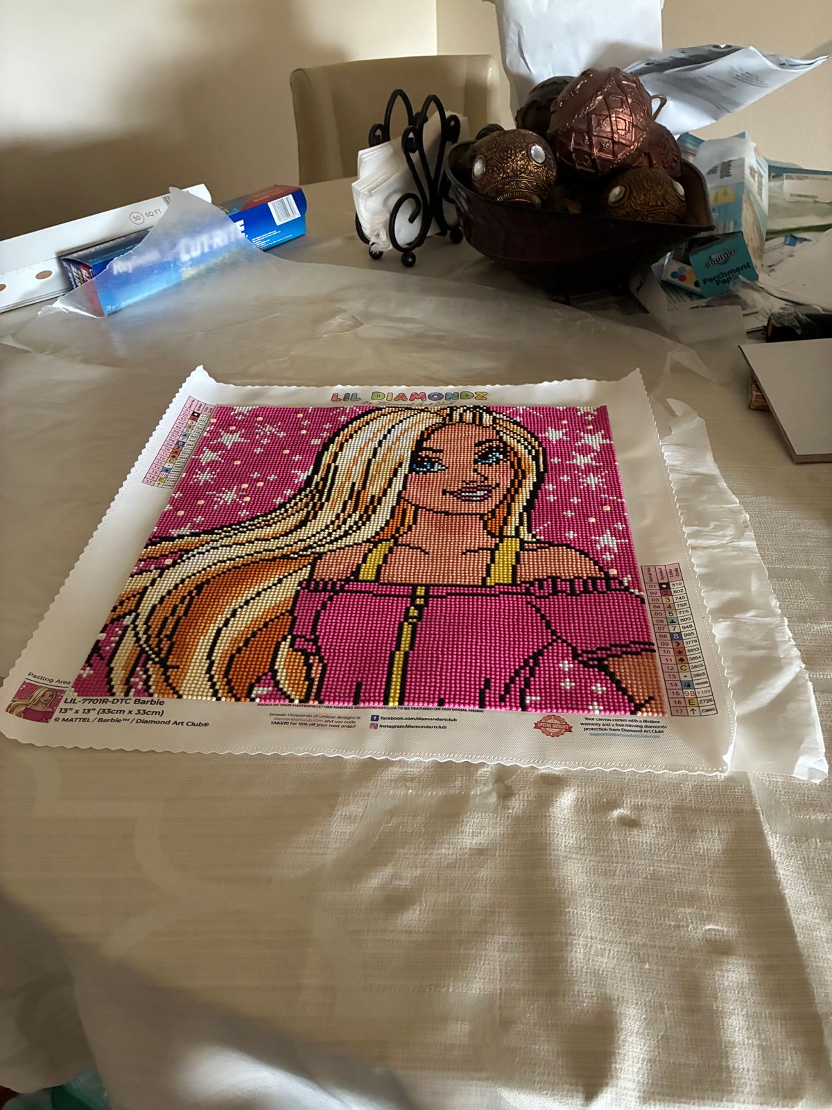 I love my Barbie diamond painting. It has special square large diamonds, fairly dust and ABs. I love the twist and pick pen. It’s ergonomic and has a 4 placer and 7 placer for those of us who are learning to multi place.