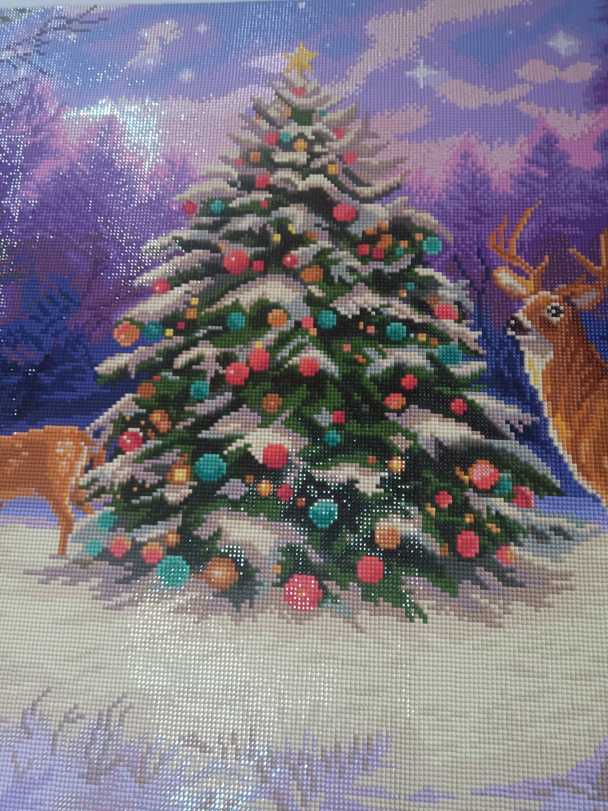 This was my second big project. I confused some colors and had to remove them and start again. I also learned that I prefer single place over multiple placing. This turned out to be a beautiful project and I framed it and proudly hung it in our living room at Christmas.