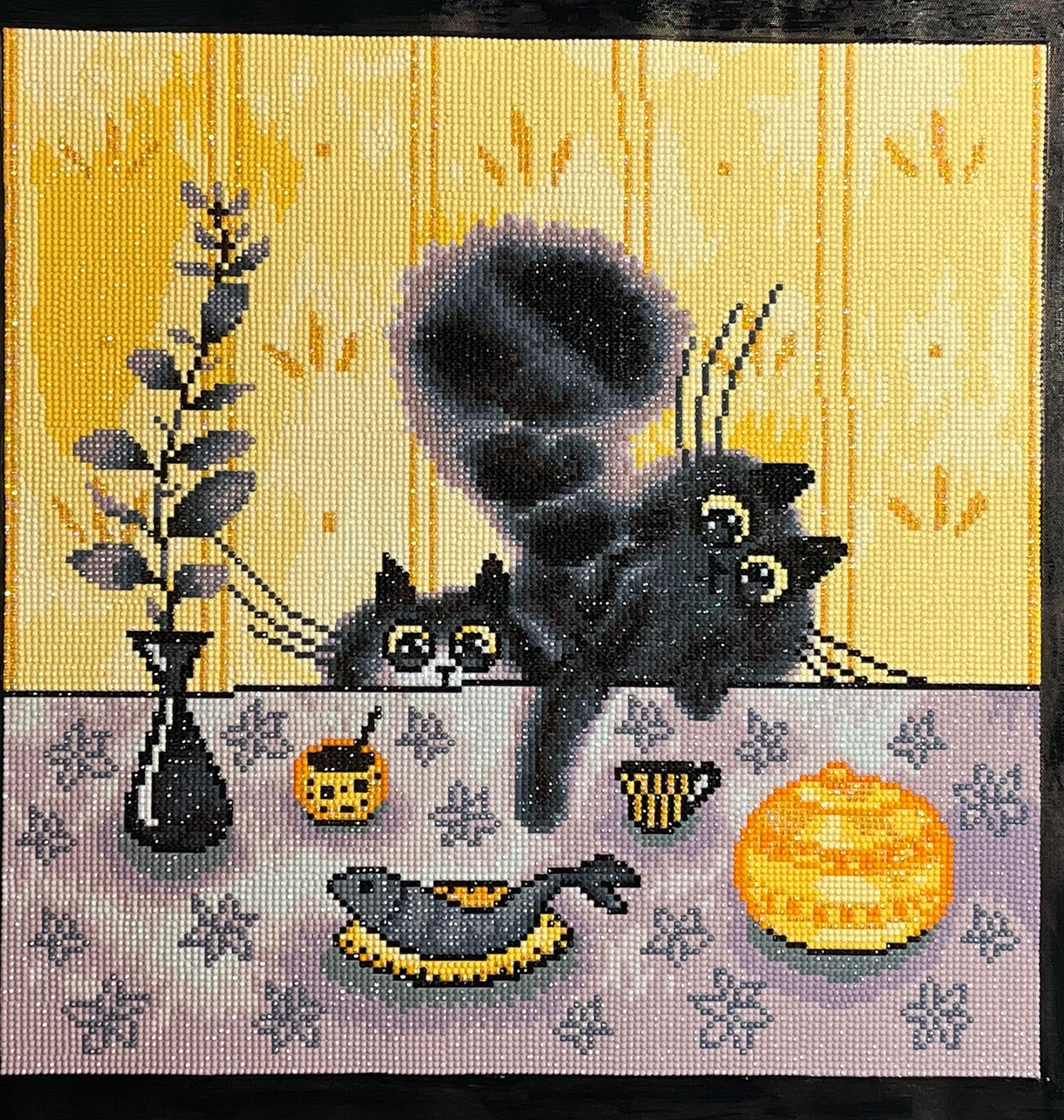 The colors in this are absolutely remarkable. Even the black cats have the most beautiful brown fair dust diamond giving them a real shimmer that pictures can't do justice!
