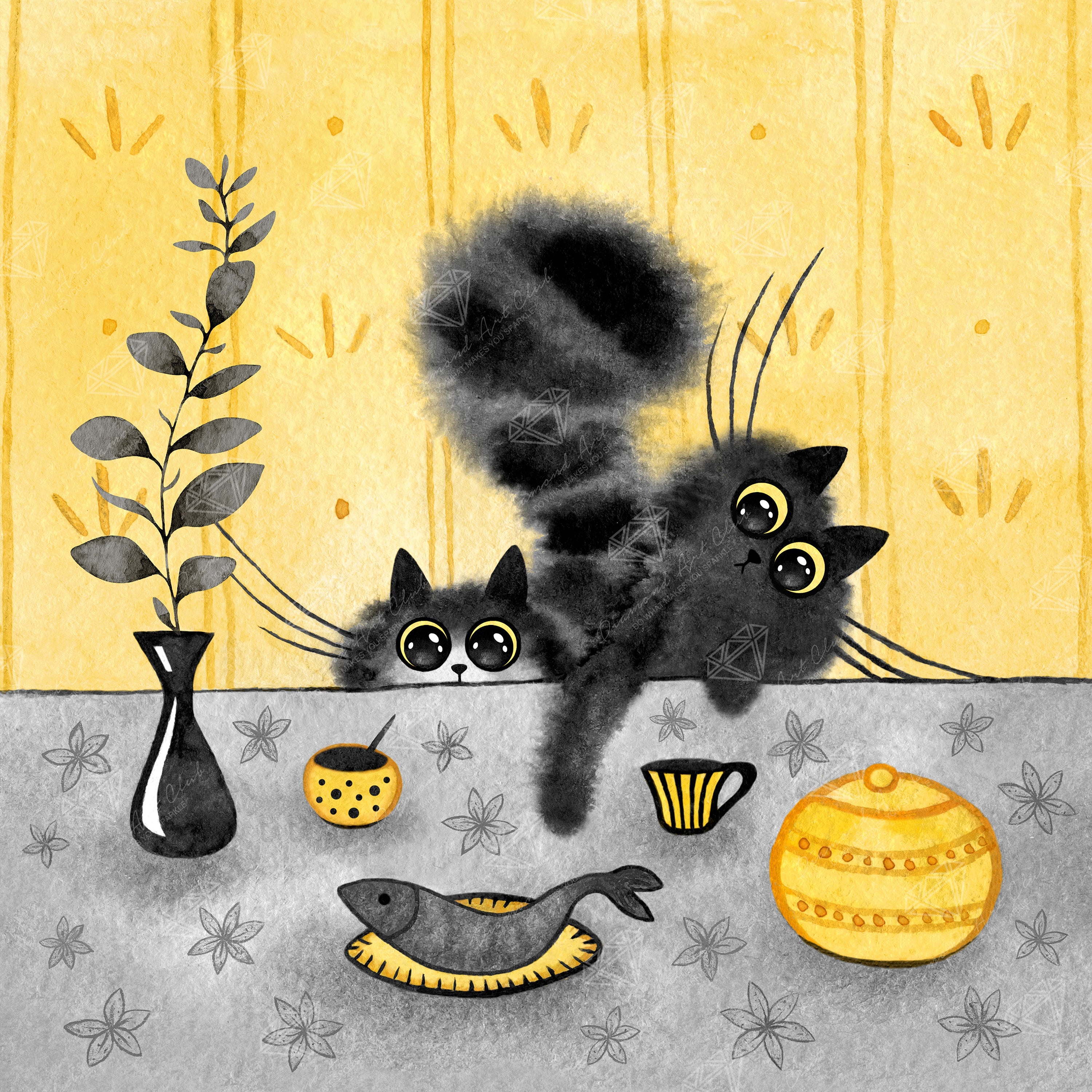 Liubka is a Ukrainian book illustrator who lives with a cat, is inspired by watching cats do cat things, and makes a living painting fluffy, chonky cats in watercolor. She also plays piano, tennis, gardens, is an art nouveau fan, and doesn't like pickled cucumbers.