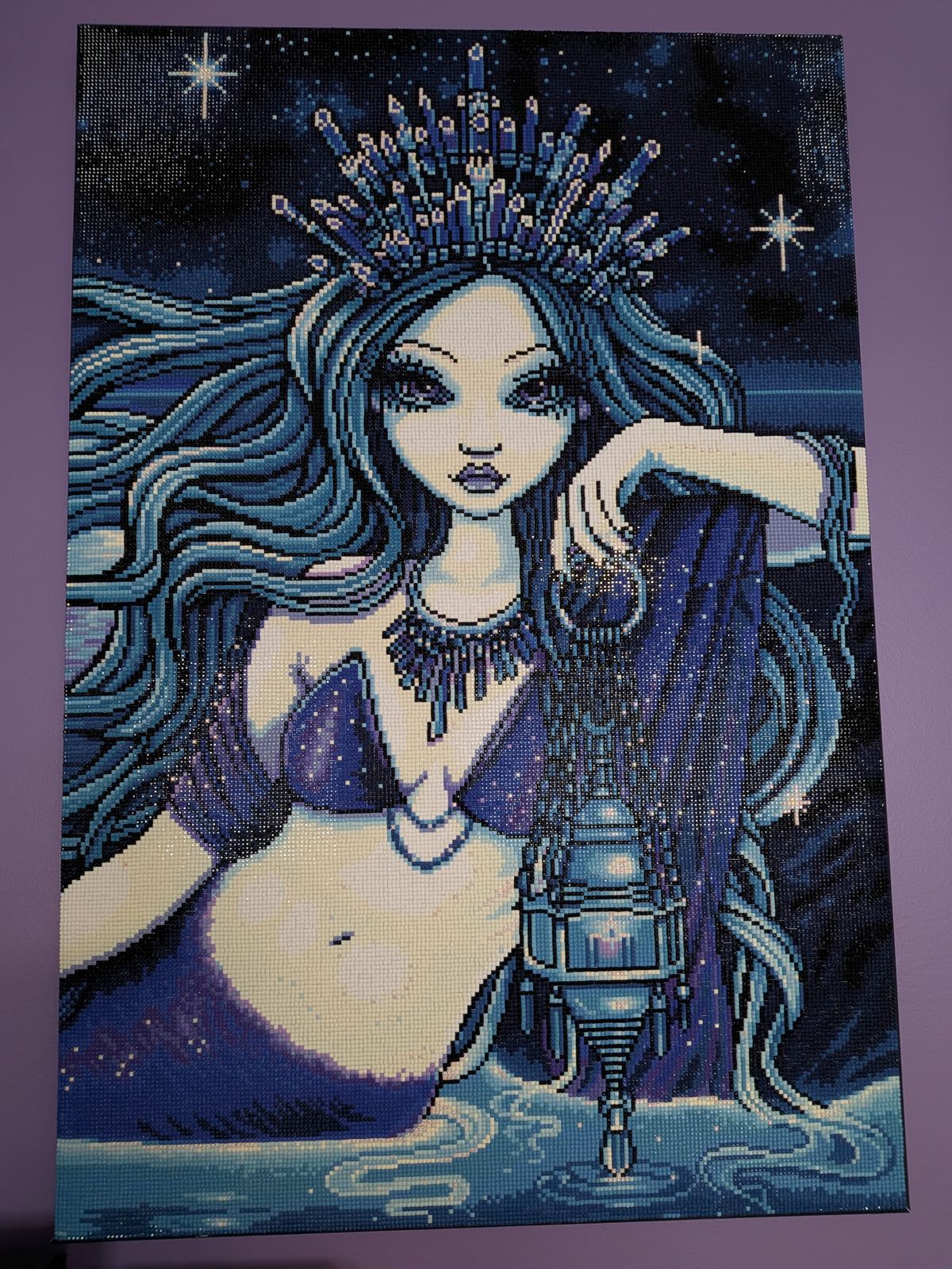 DAC offers the best quality diamond art that I’ve found. This is an older offering (and discontinued now, I believe). The backing is plush, the symbols clear, so it really is a dream to work on. I’m looking forward to this one as I love the purple and Myka Jelina Art.