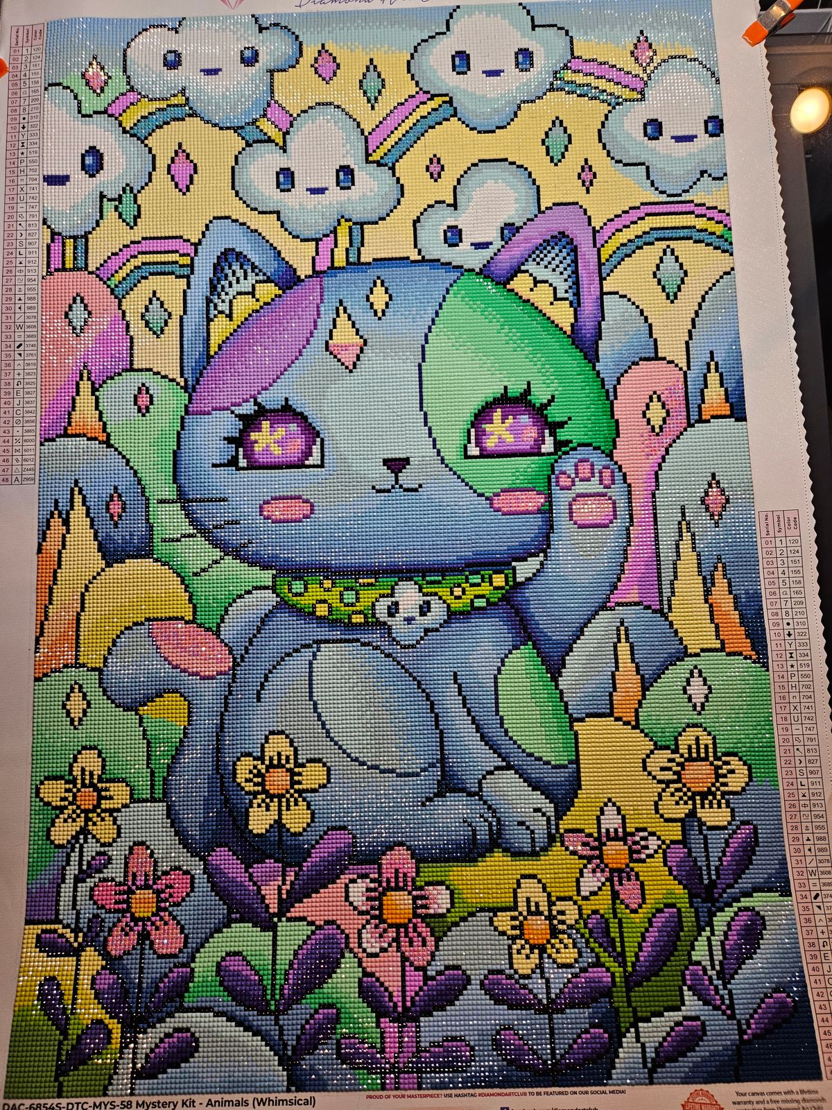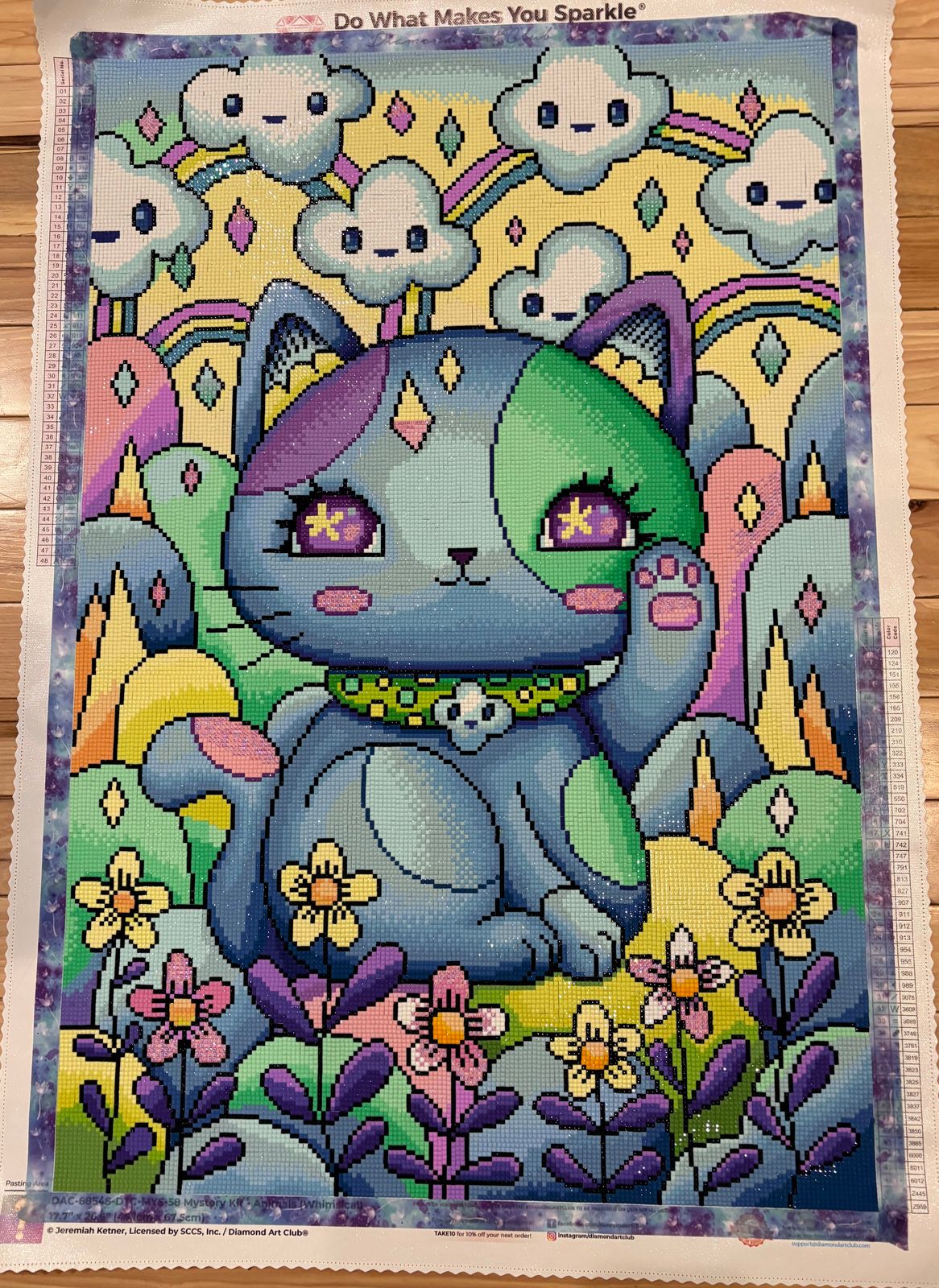 This kit was an absolute blast to work on. It was my first mystery kit and I would definitely do another one. Jeremiah Ketner is my all-time favorite artist so I just had to have it when it was released. And I loved how the picture just slowly revealed itself the further along I got. The symbols on the chart were very easy to read, and, the colors were very bright and vibrant and I would definitely do this kit again. And hopefully DAC releases more Jeremiah Ketner mystery kits in the future. His work always turns out adorable.