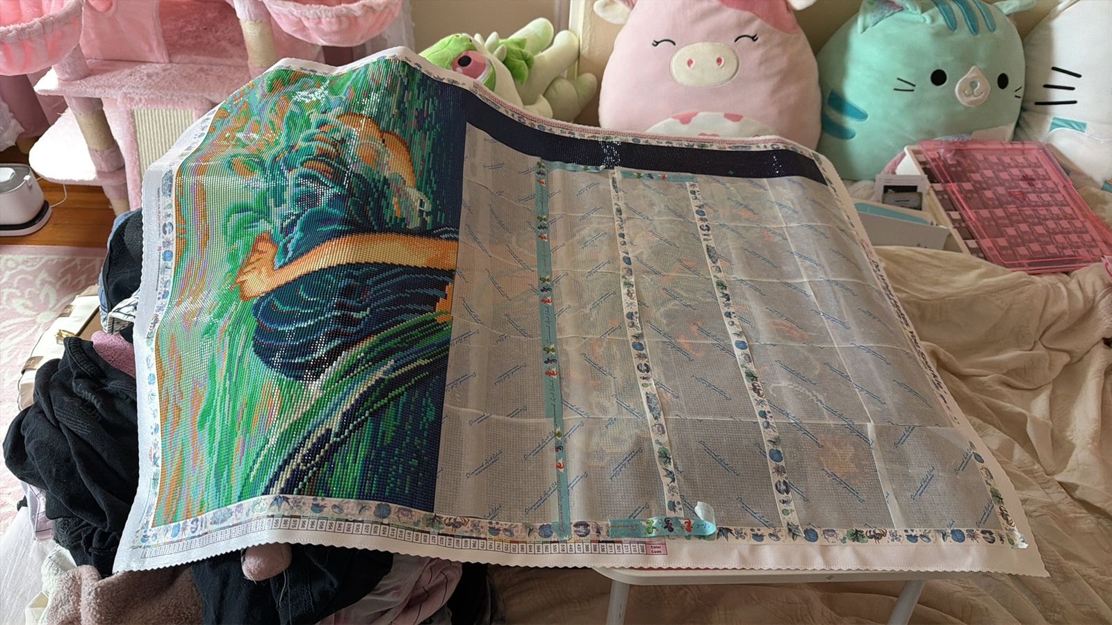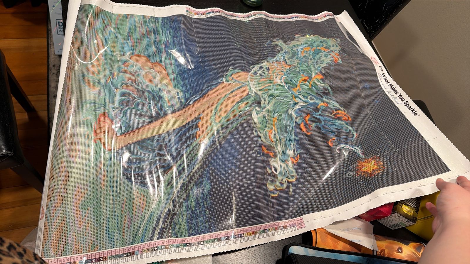 This was my first official DAC canvas, and the largest one I’ve done yet. I put 95 solid hours into this canvas and really enjoyed it. There was a nice mix of colors, really pretty fairy dust, and a good blend of color blocking areas and confetti. I was worried that all the blues and greens might burn me out but I never felt like I was tired of working on this canvas. This was a gift for a friend, and I’m excited to send it off to her! Can’t wait to start the next one!