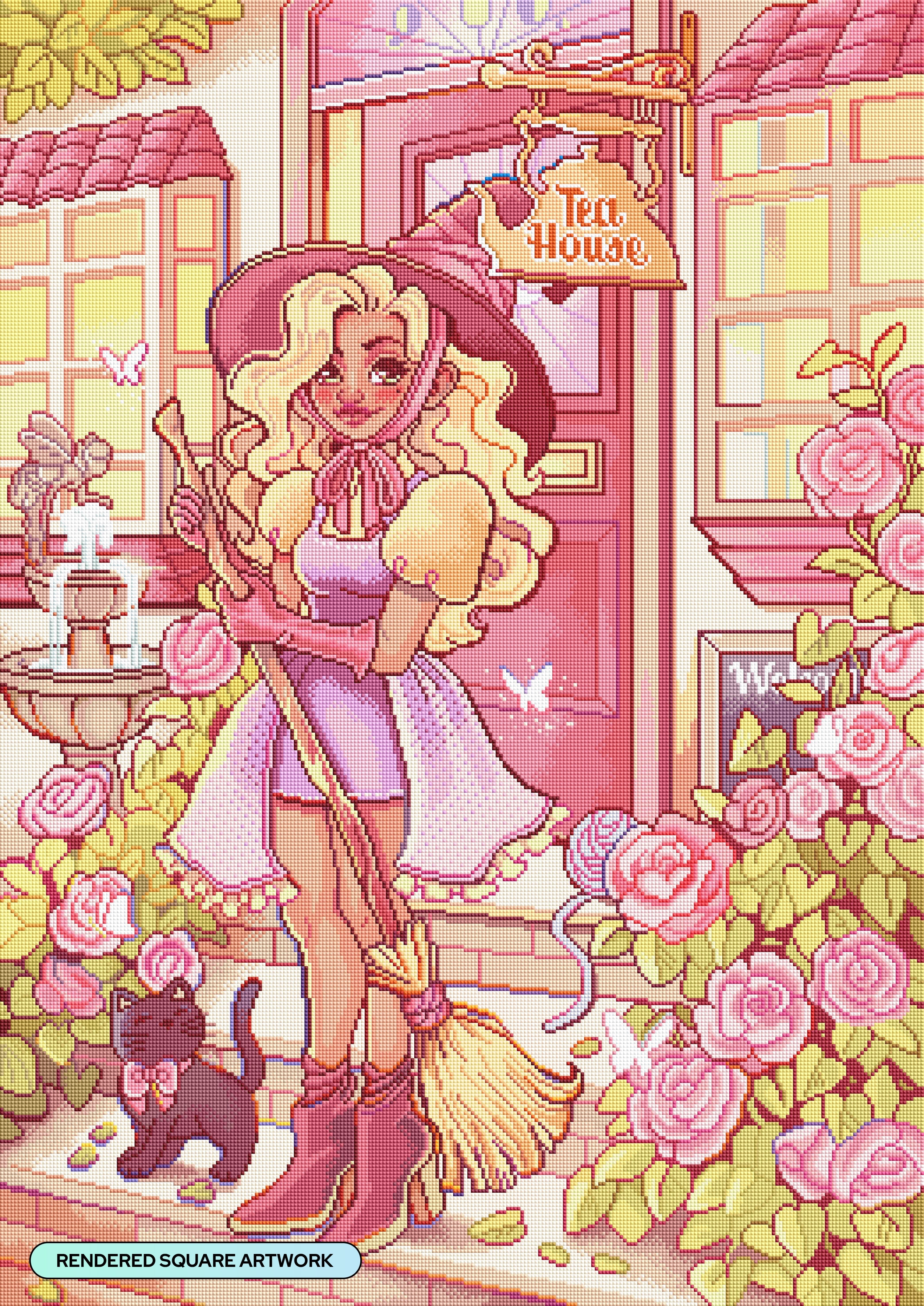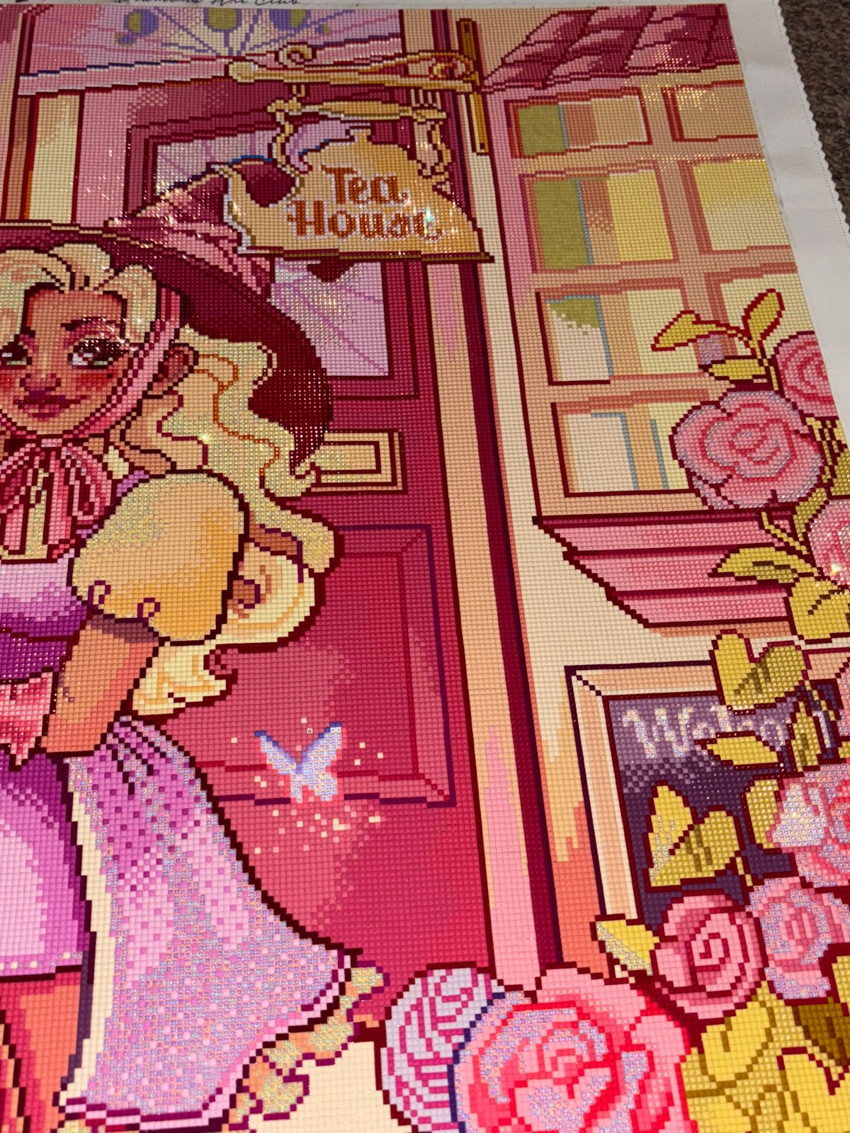 I absolutely loved this one. The colors in pinks and peaches and wonderful and I got to use the frosted new drill which was so gun. Witch's Tea House is one Would do again if I had the chance!