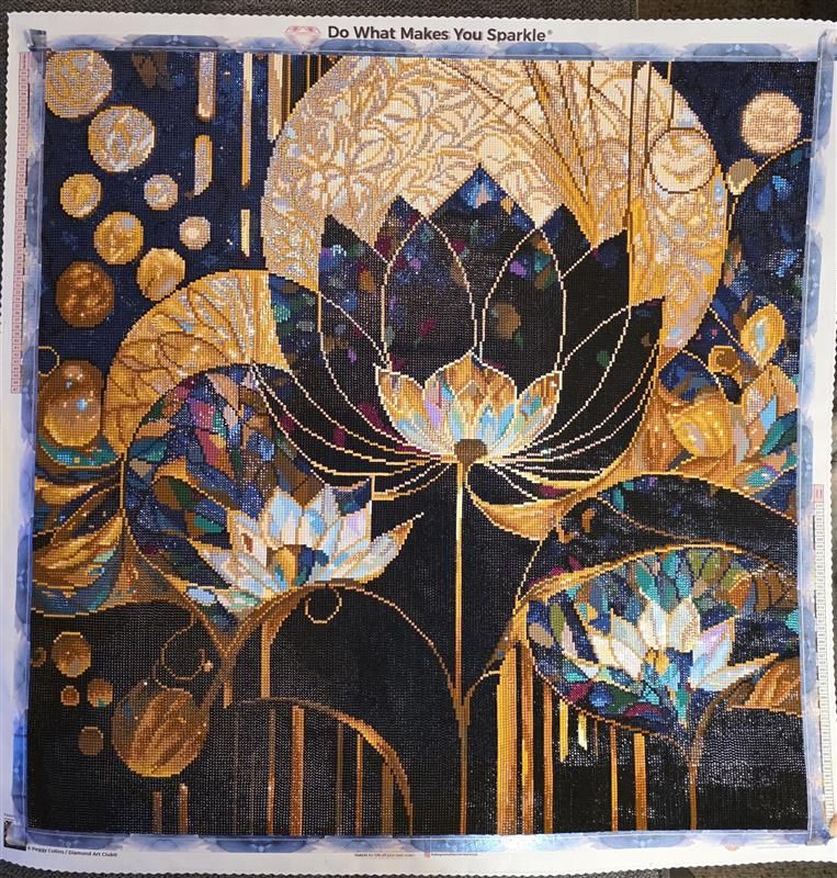 Diamond Painting Golden Lotus 27.6" x 27.6" (69.9cm x 69.9cm) / Square with 47 Colors including 3 ABs and 4 Fairy Dust Diamonds / 78,961