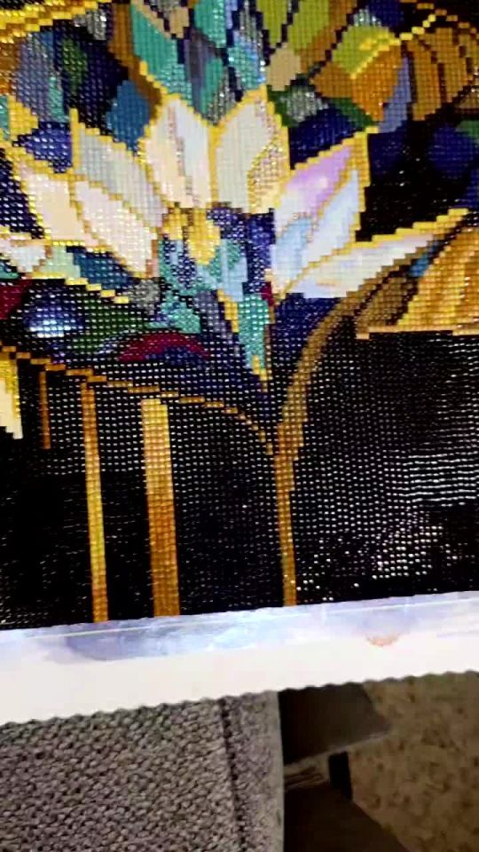 Файна алмазна мозаїка, картина вийшла наче вітраж. Було трошки браку в чорному кольорі, але його було достатньо прозапас, аби вибирати більш рівненькі алмазики.