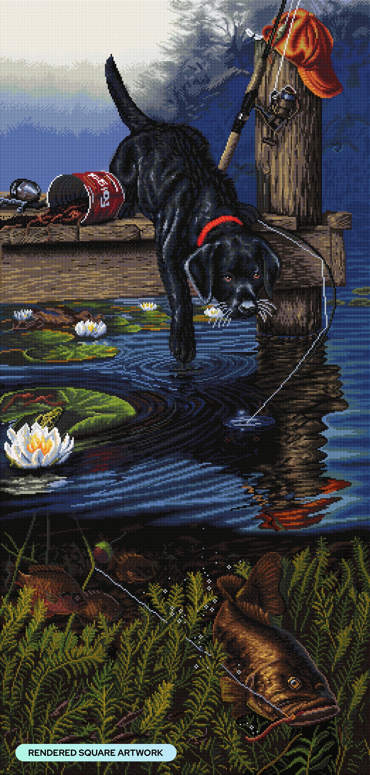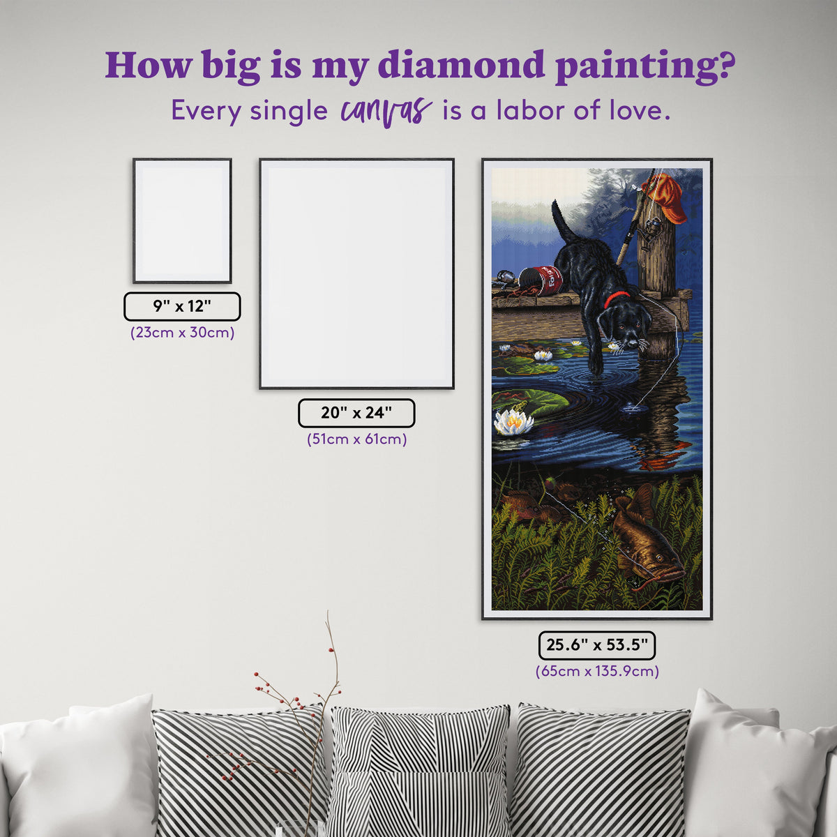 This art is huge. I had to change my normal space of my desk to my dining room table. The colors are beautiful. I bought it as a Christmas preset because my mom loves fishing and black labs. Im going to do it and frame it for her.. although its so big im not sure where she'll hang it .