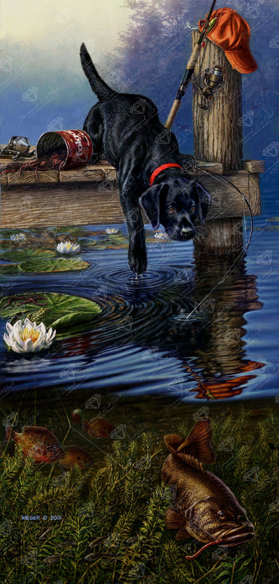 Dip a curious paw into the glistening surface. Keep one eye on the worm and the other on your best chance to land the catch of the day!