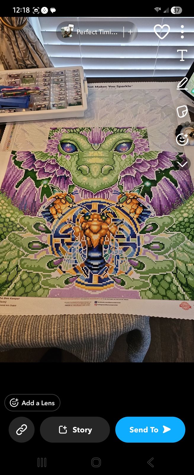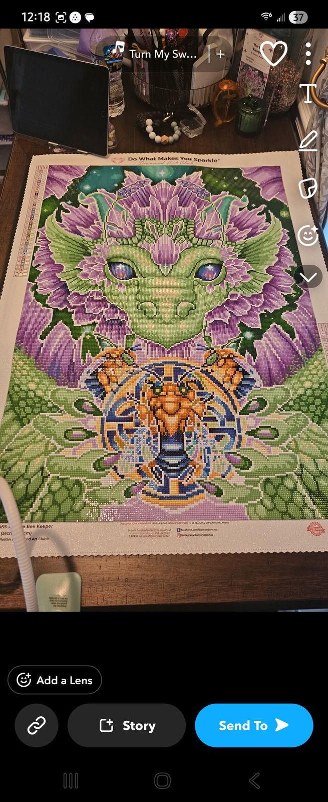 I truly enjoyed working on this canvas! The different variations of green and purple made this piece so fun to work on! The artwork is simply beautiful and this is a piece I wouldn't mind doing again!!! Dragons & Bees are two of my favorites, so this was an instant buy for me!!! Love the size of this canvas as well, finished it up in no time at all.
