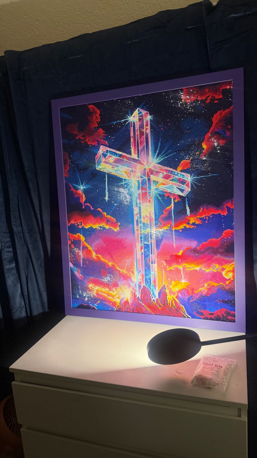 Got this kit for my husband and we knew it was pretty just from seeing it on the app but it’s far more beautiful and vibrant in person even without the drills and finished product