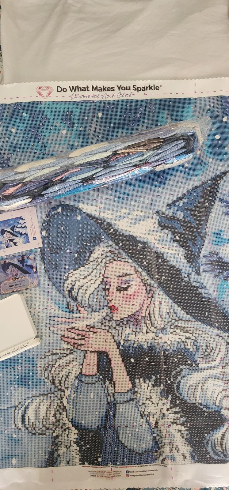 This one came out so more beautifully than I could have even imagined. And the special drills in this were perfectly charted, honestly! The metallics in the trees, the AB and fairy dust in her hair, all of the snow, the fairy dust on her cheek bone - so stunning! 😍