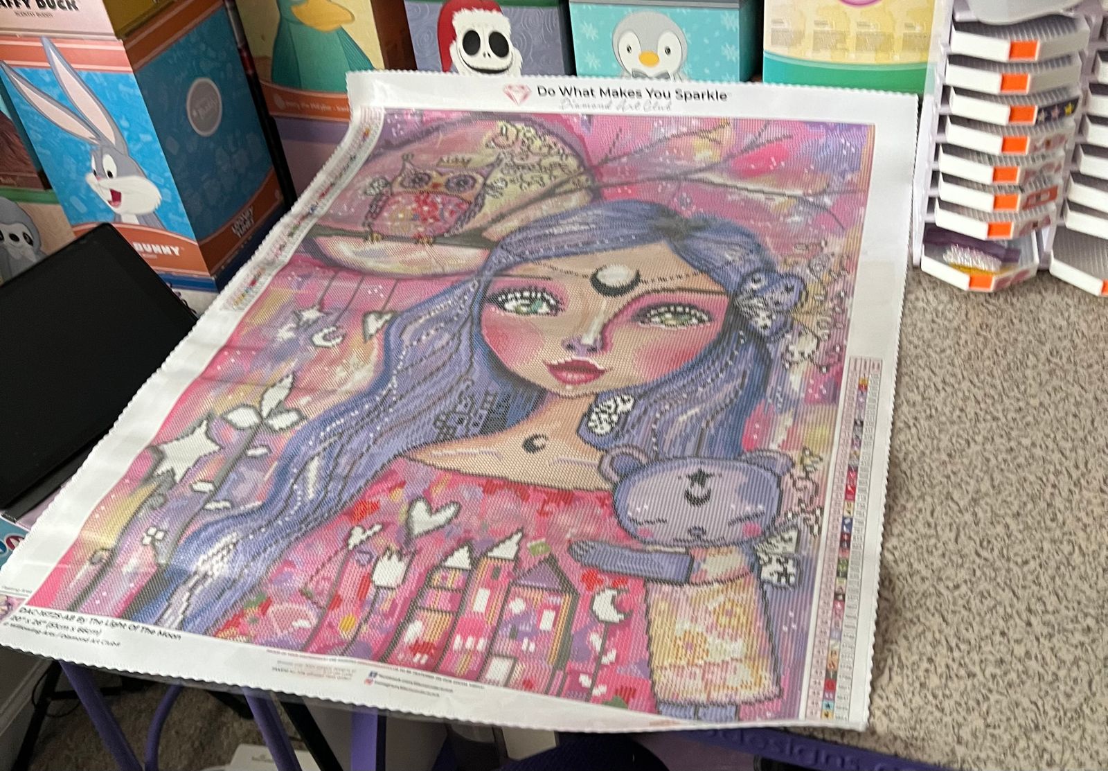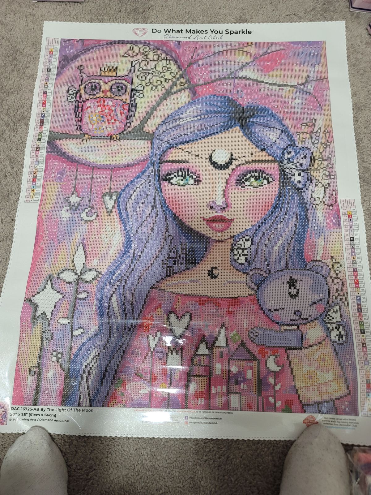 Gorgeous colors and what a sweet pretty face! I love Willowing Arts whimsical watercolor images and DACs rendering of Tamara Laporte's artwork is exceptional. Of all the DAC canvases I've completed so far, and I've done a lot, By the Light of the Moon is my top favorite DP. More from this artist please!