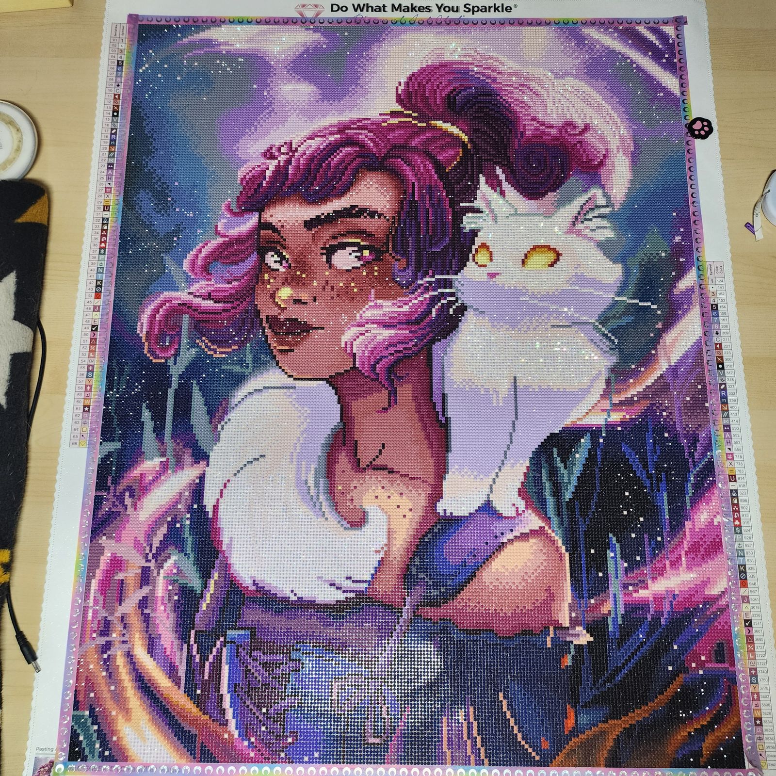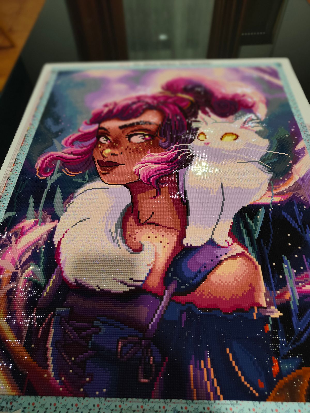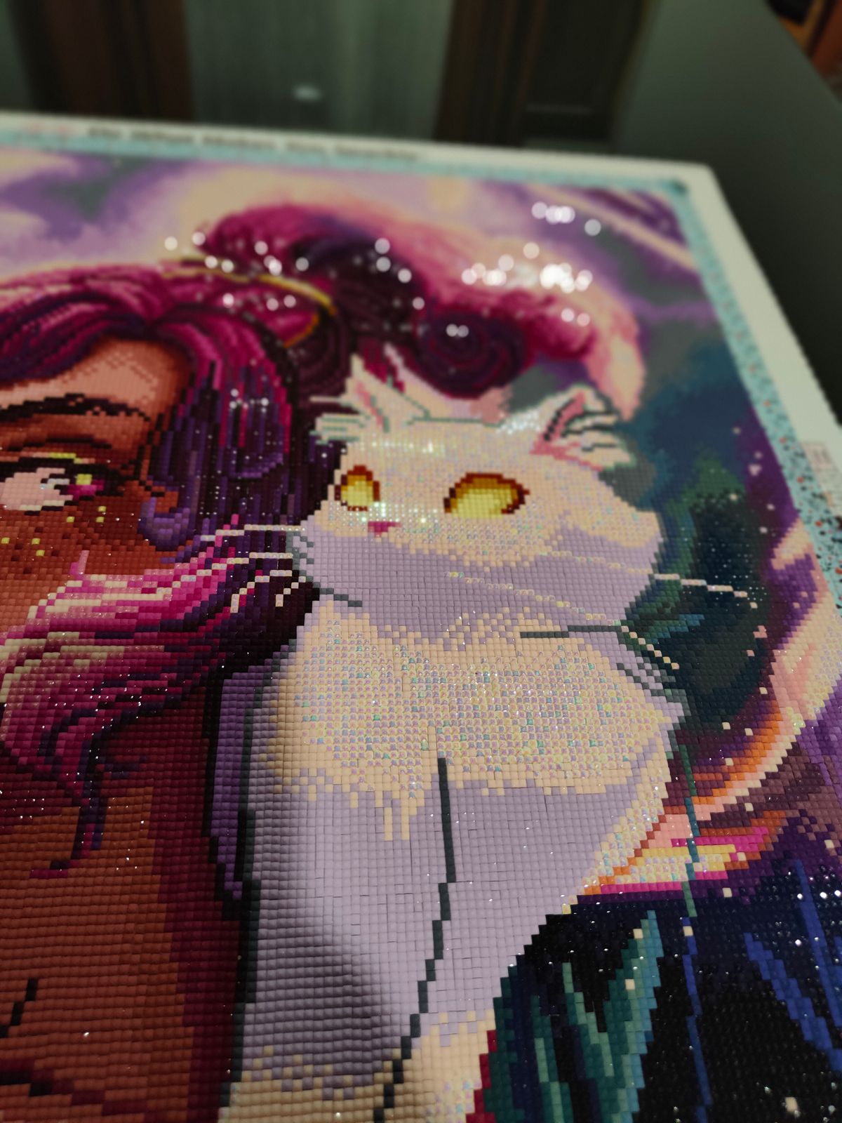 This was my very first Diamond Art Club kit, and it turned out gorgeous! Photos really don't capture the magic of the kitty in the AB drills. Nice amount of confetti kept me engaged as a single placer, and I thoroughly enjoyed the satisfying 'click' of the squares fitting together.