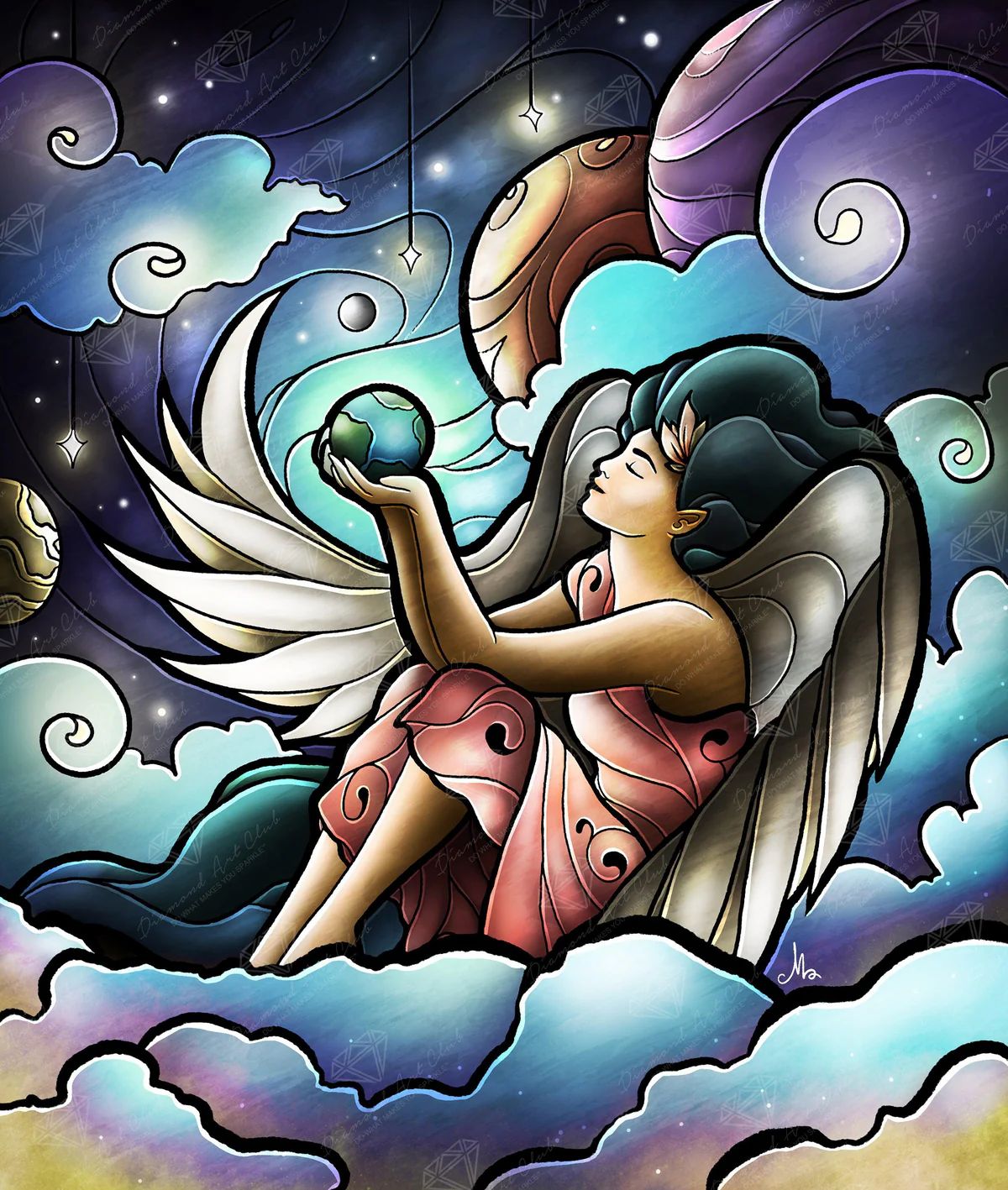 Cradle our treasured planet in the palm of your hands and lift it up unto the light of shimmering stars. As you sit amid the swirling, tumbling clouds, gaze upon the earth with wonder and let your gentle caress calm its troubled soul.