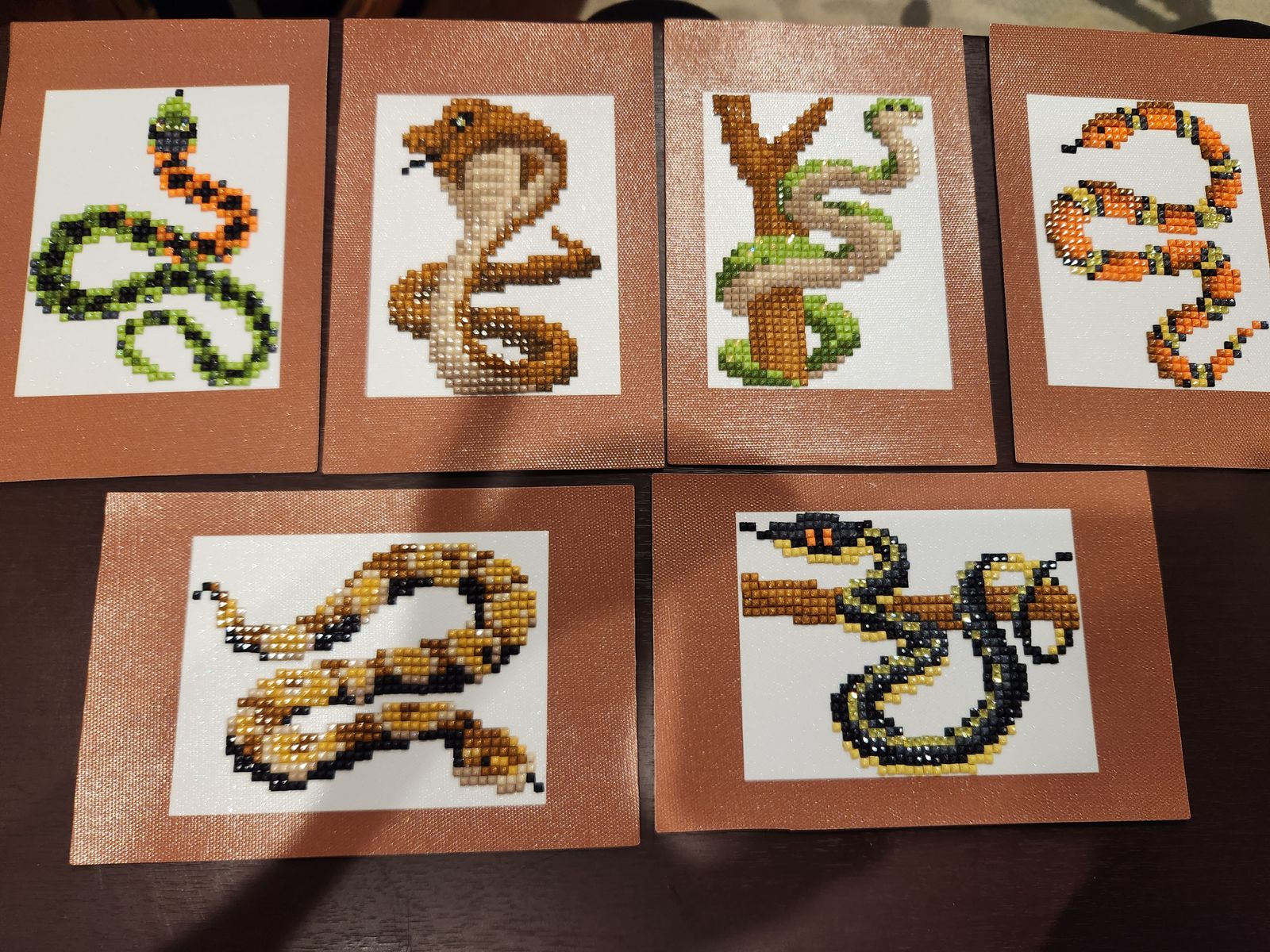 Really enjoyed these only did round coasters before so really enjoyed these square snakes, really beautiful colours and nice design too