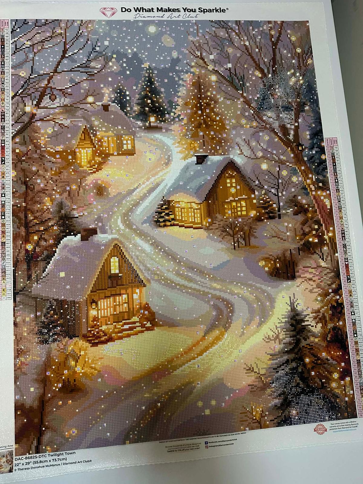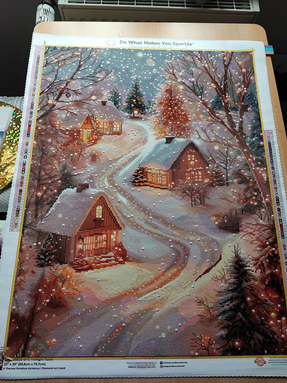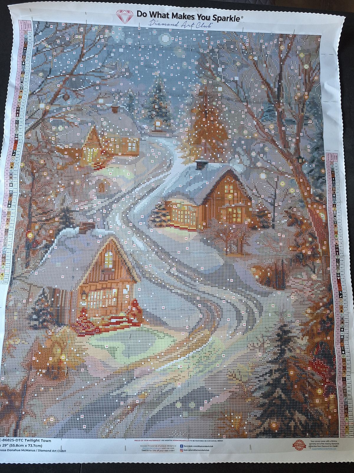 I wasn't sure if I would enjoy working on this because of the neutral colors and confetti, not my favorites. Also, it's bigger than anything I've done before. But I'm loving it. It's relaxing to work on, the colors feel peaceful, then come the brilliant sparkles of snow. I'm so happy I got this one!