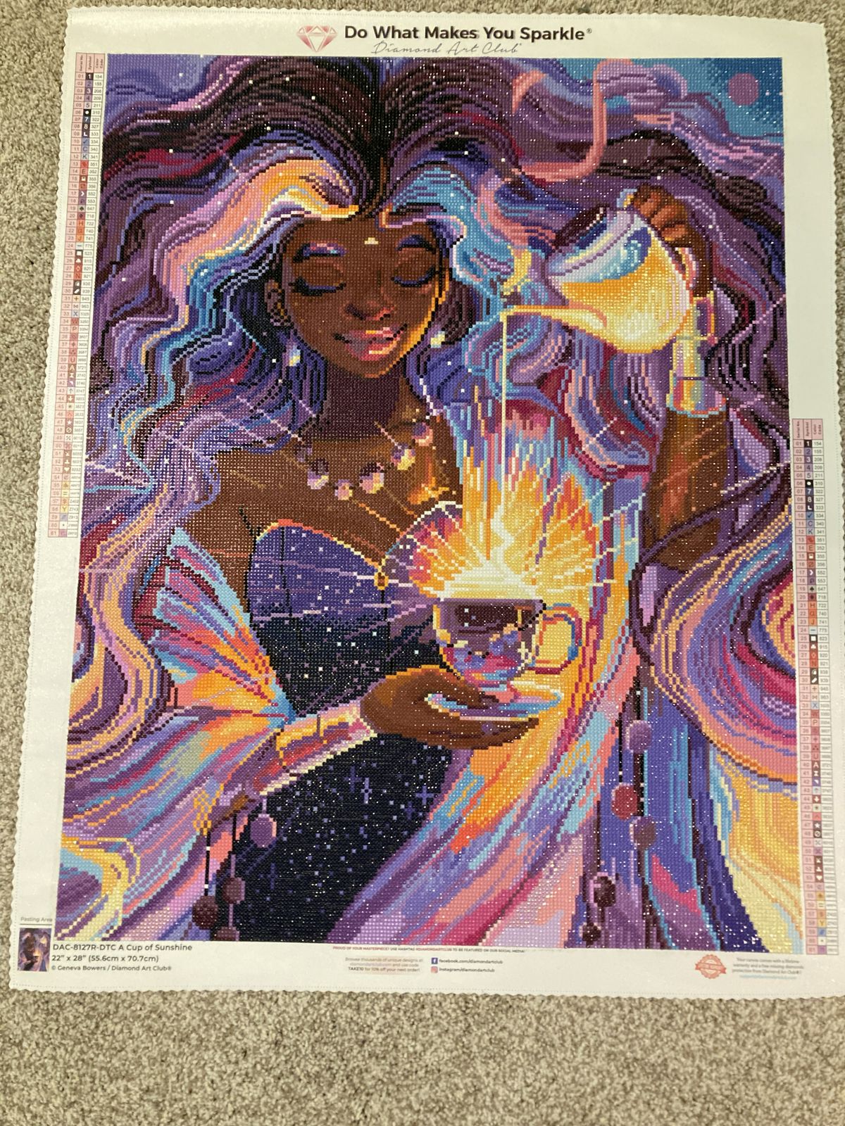 I recently completed A Cup of Sunshine by Geneva Bowers from Diamond Art Club, and I am absolutely in love! The artwork is pure happiness — the colors are so vibrant, warm, and uplifting. It truly feels like holding a little cup of sunshine in your hands.