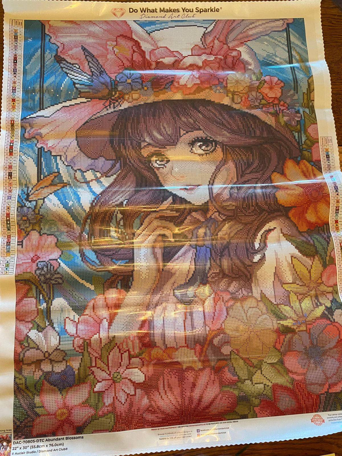 This ode to spring by the Auclair Studio has been excellently rendered to diamond art. DAC always does an amazing job, evidenced in this kit in the girl’s face. Excellent quality drills and canvas!