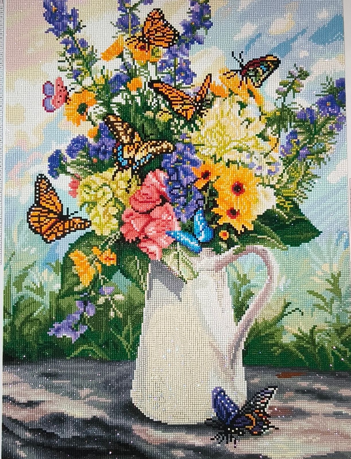 Set out a pitcher of loveliness and watch as the butterflies flutter in! Delight in their eye-catching colors and patterns mingling among the soft floral pastels on a bright sunny day.