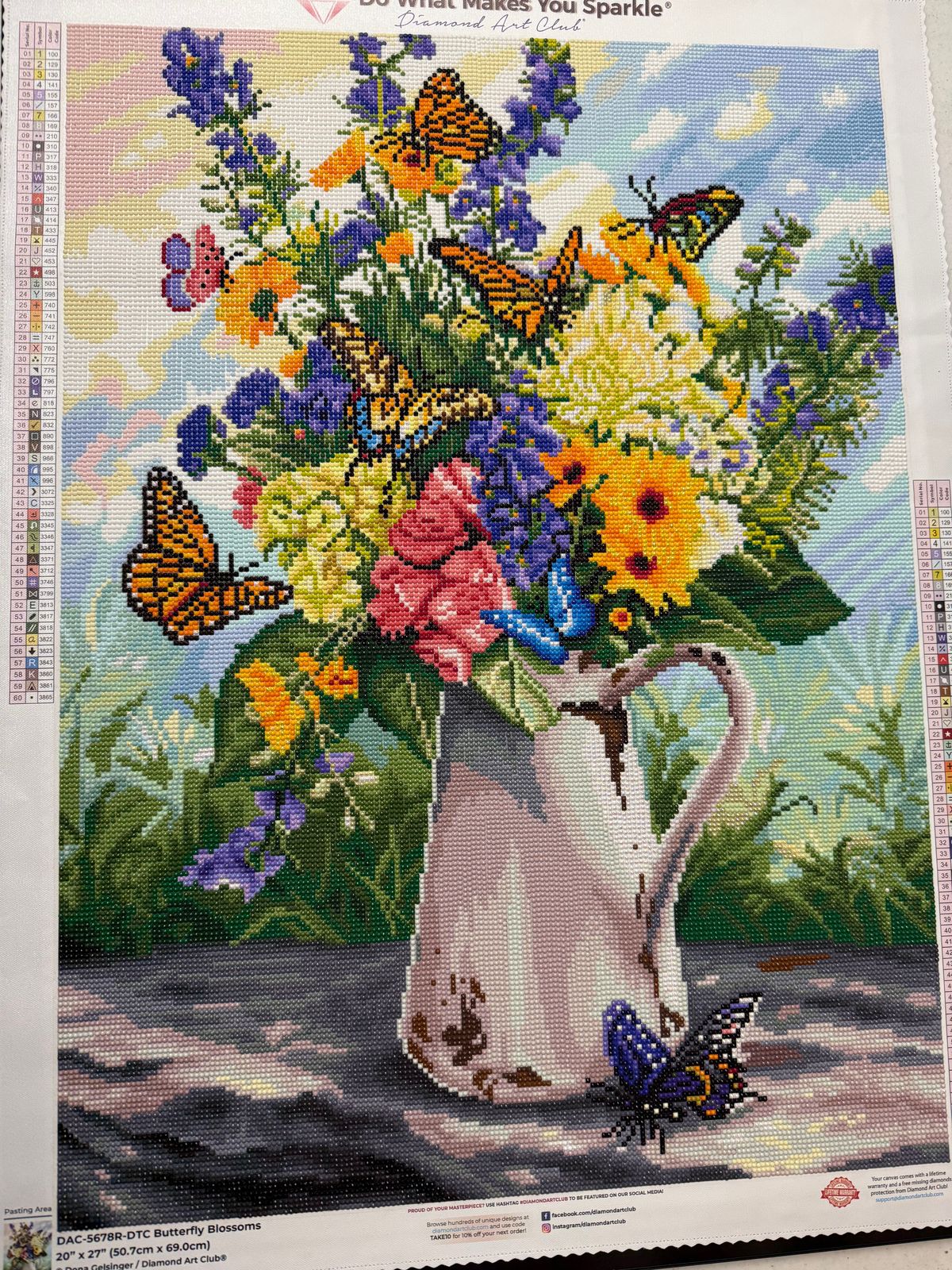 Love Dona's artwork. Round diamonds always have my heart! I did this one after working on 3 huge square drill paintings. I finished it in 10 days and loved every sparkly minute of it. I did make a small change to the rusty can and brightened it up a bit! That's what I love about this craft.. We buy the artwork we love and are free to make small changes and make it our own unique piece 🤩