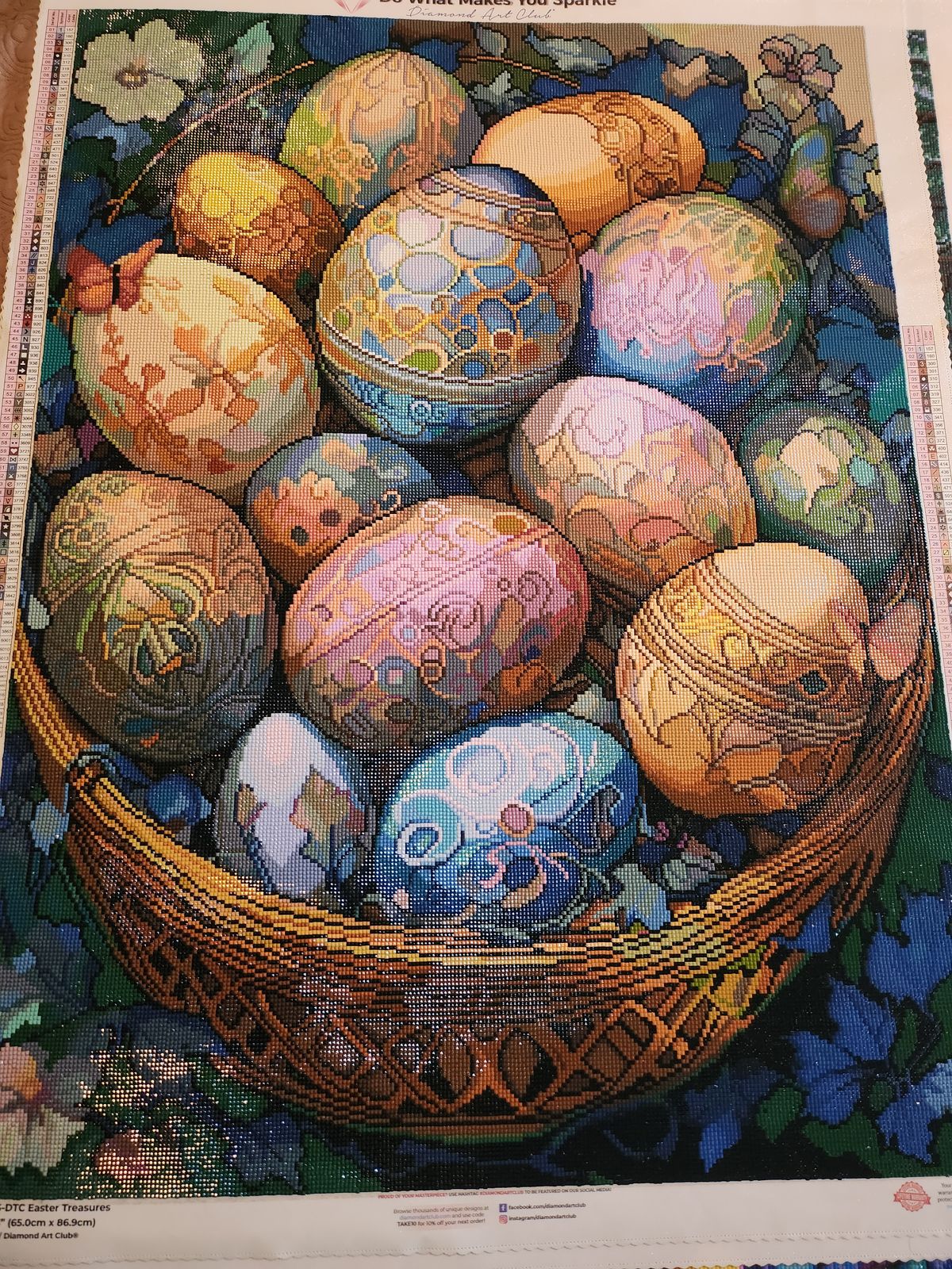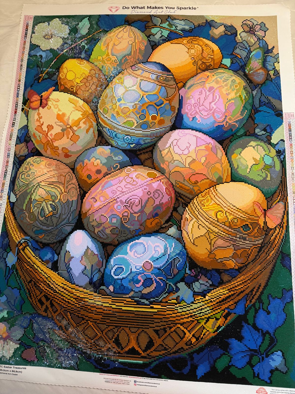 I had so much fun completing this kit!! The special drills were charted beautifully and those eggs are just so colorful. You don't have to wait for Easter. Get it now!!!