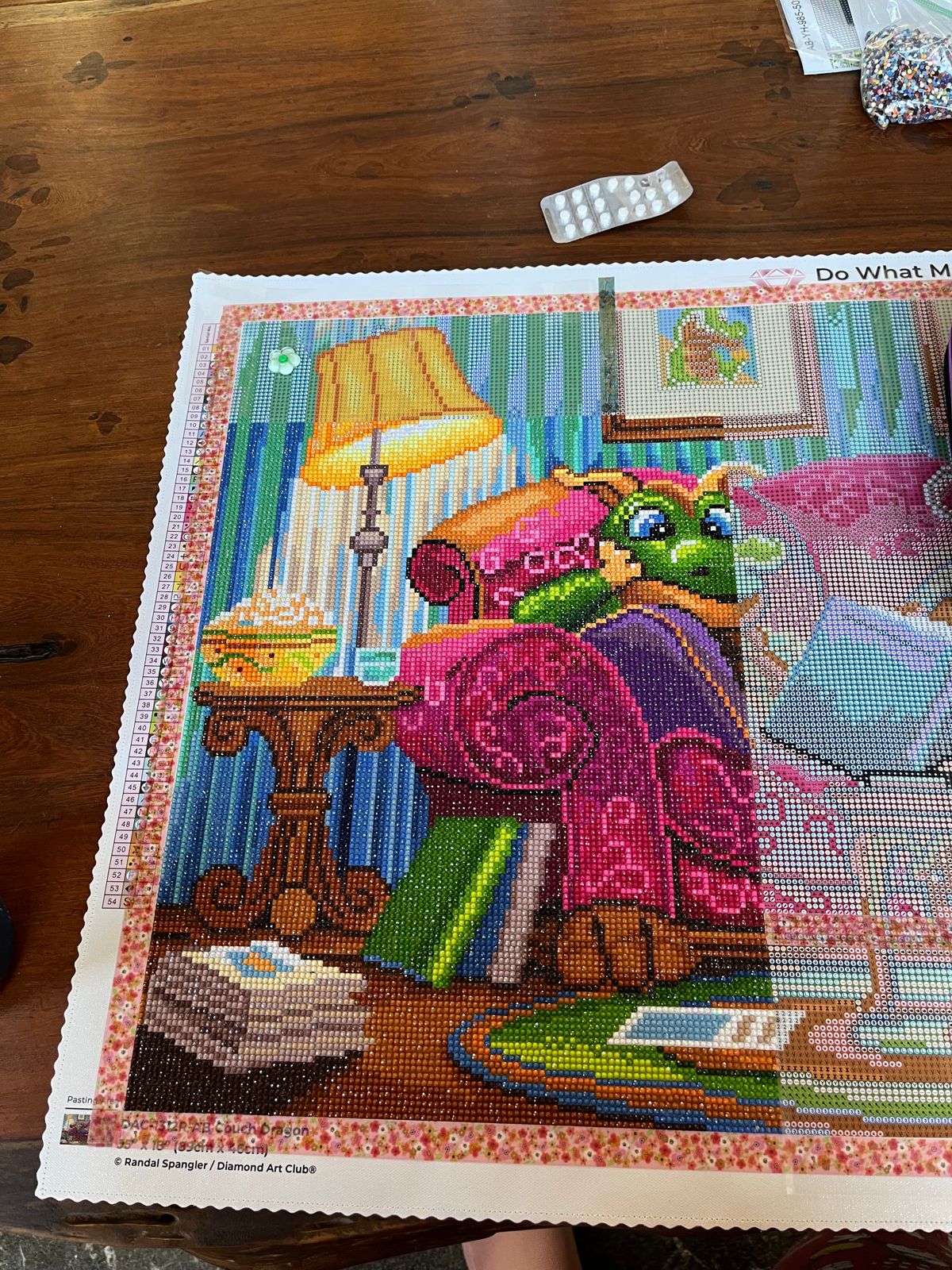 I’m about halfway done with this diamond painting and I just can’t believe how much I’m enjoying it. The quality of diamond art club is better than anything I’ve worked on before. I love the colors, the sparkle, the glue, and the cover sheet. 10/10