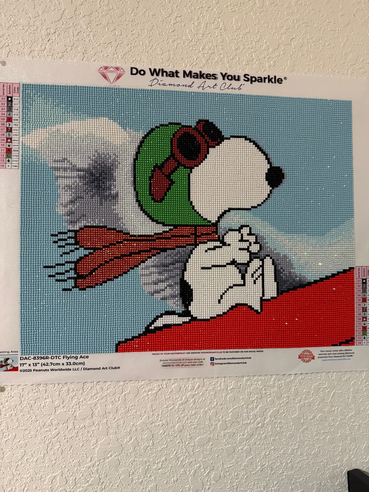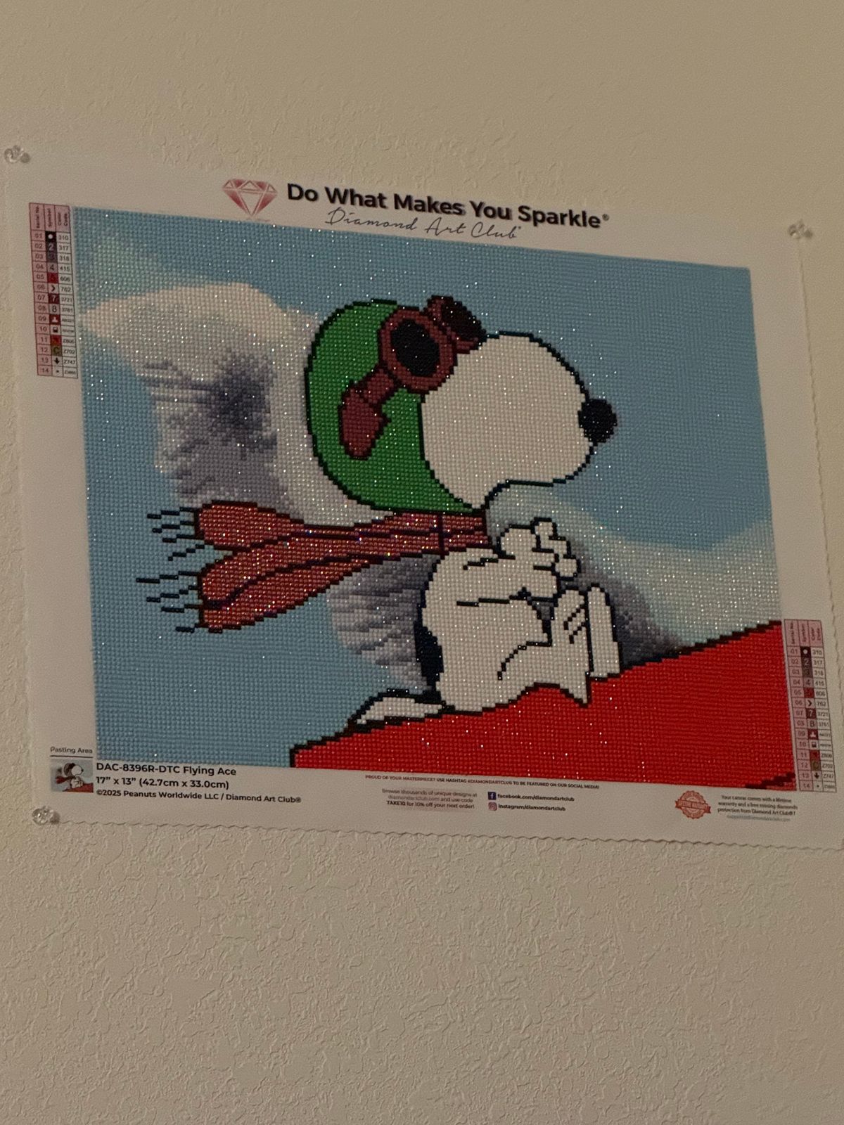 My husband LOVES Flying Ace Snoopy and completed this canvas. I can’t believe how much sparkle it has. It was a fairly quick finish for him since there’s a good bit of color blocking. Very beginner friendly. Cant wait to see what DAC he picks next.