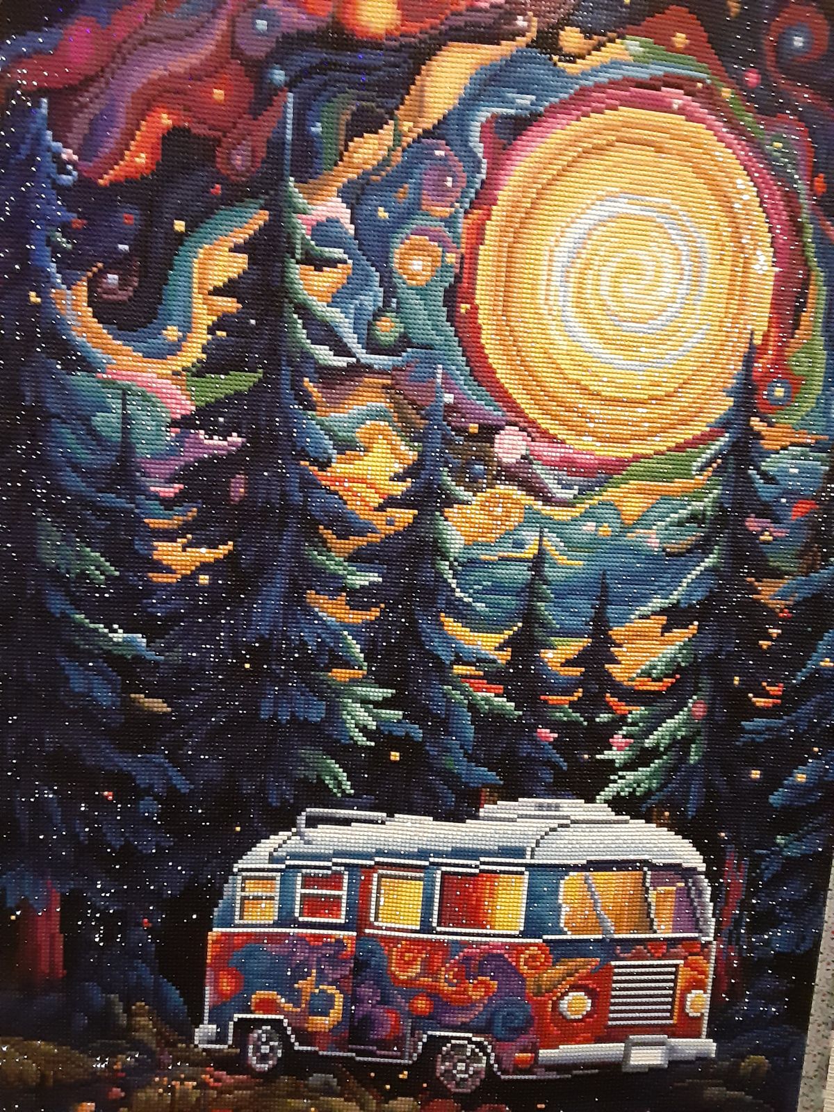 I really enjoyed this canvas! The colours were fun and the AB drills really pop. I love camper vans so this was the perfect project for me 😊