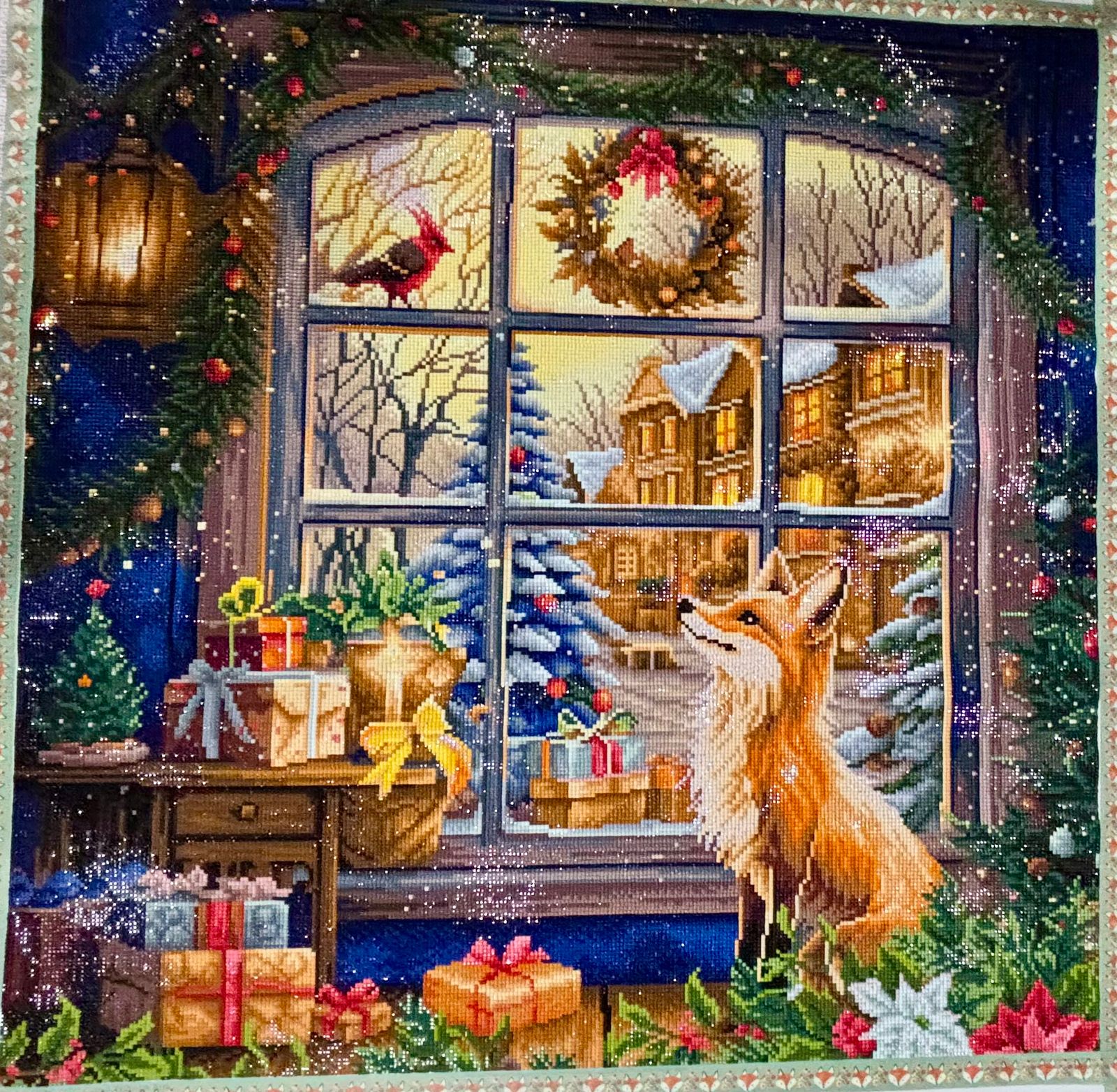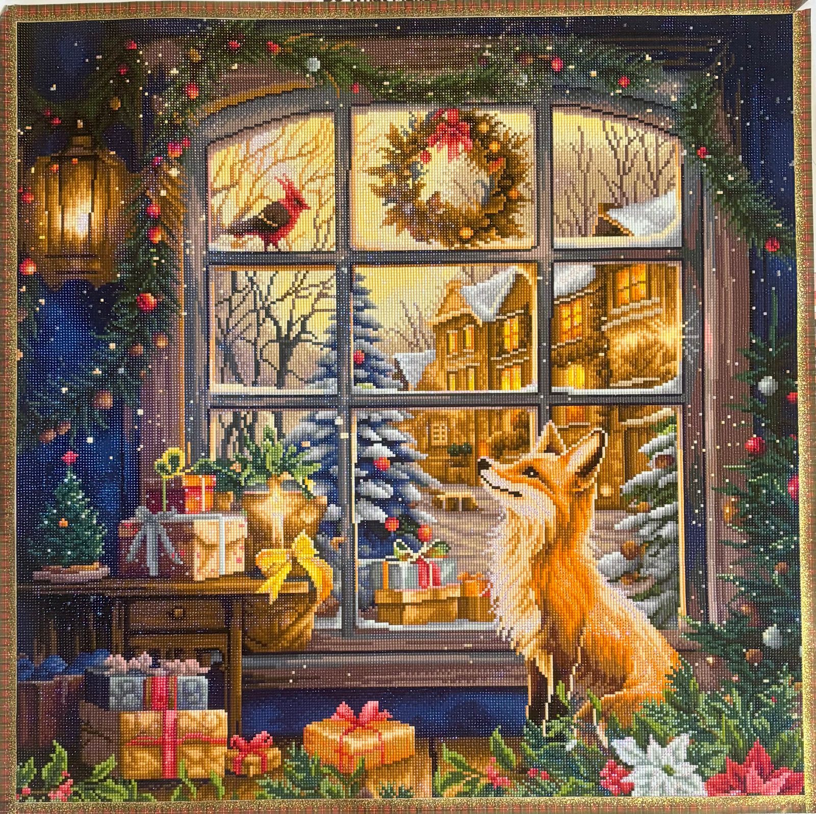 This diamond painting turned out beautifully! The warm glow from the windows, combined with the snowy village scene and festive details, looks like such a cozy atmosphere! The colors are rich and vibrant, and the sparkle really brings the fox and holiday décor to life. It was perfect for the holiday season!