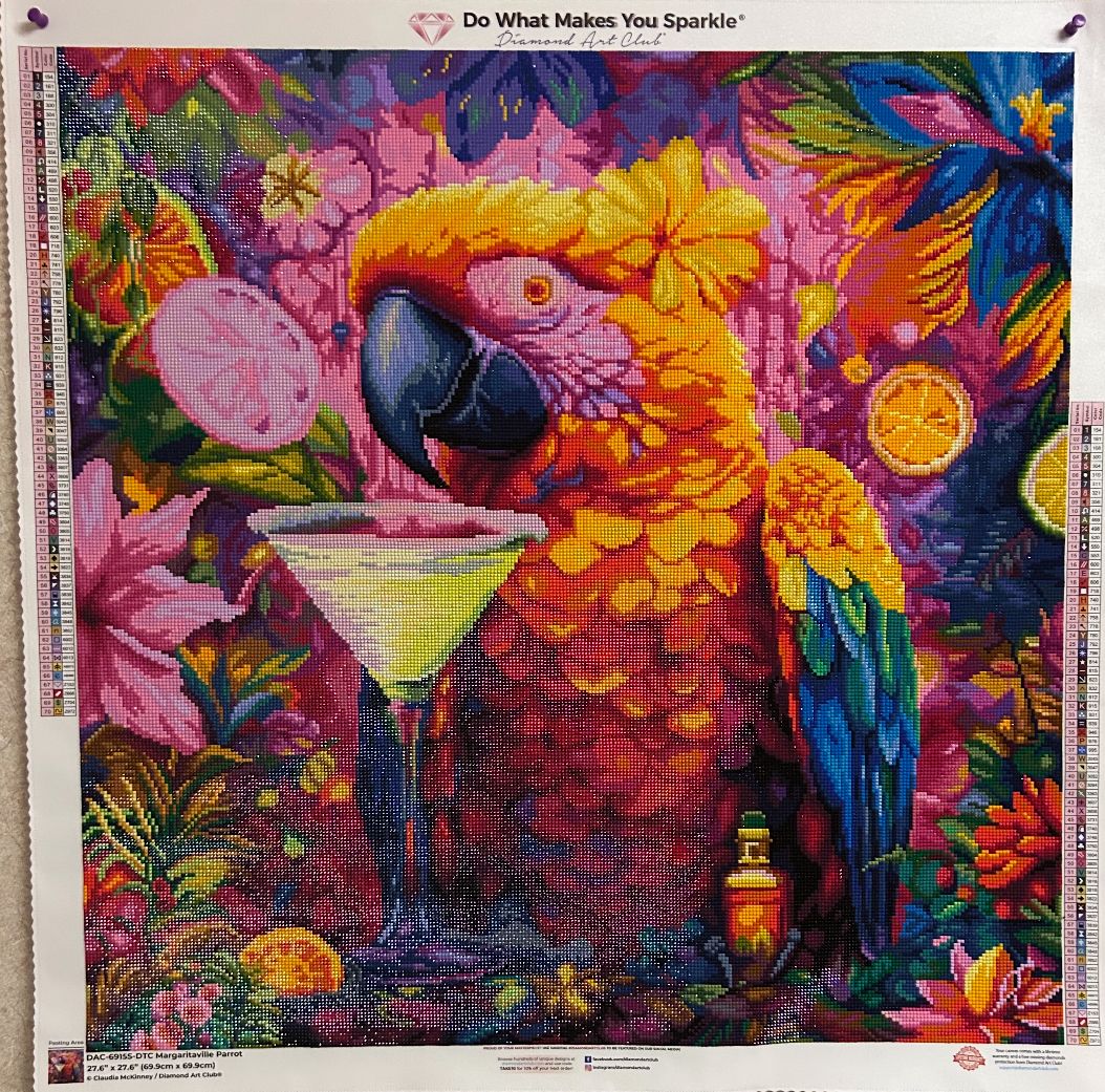 Diamond Painting Happy Hour Parrot 27.6" x 27.6" (69.9cm x 69.9cm) / Square with 70 Colors including 2 ABs and 4 Fairy Dust Diamonds / 78,961