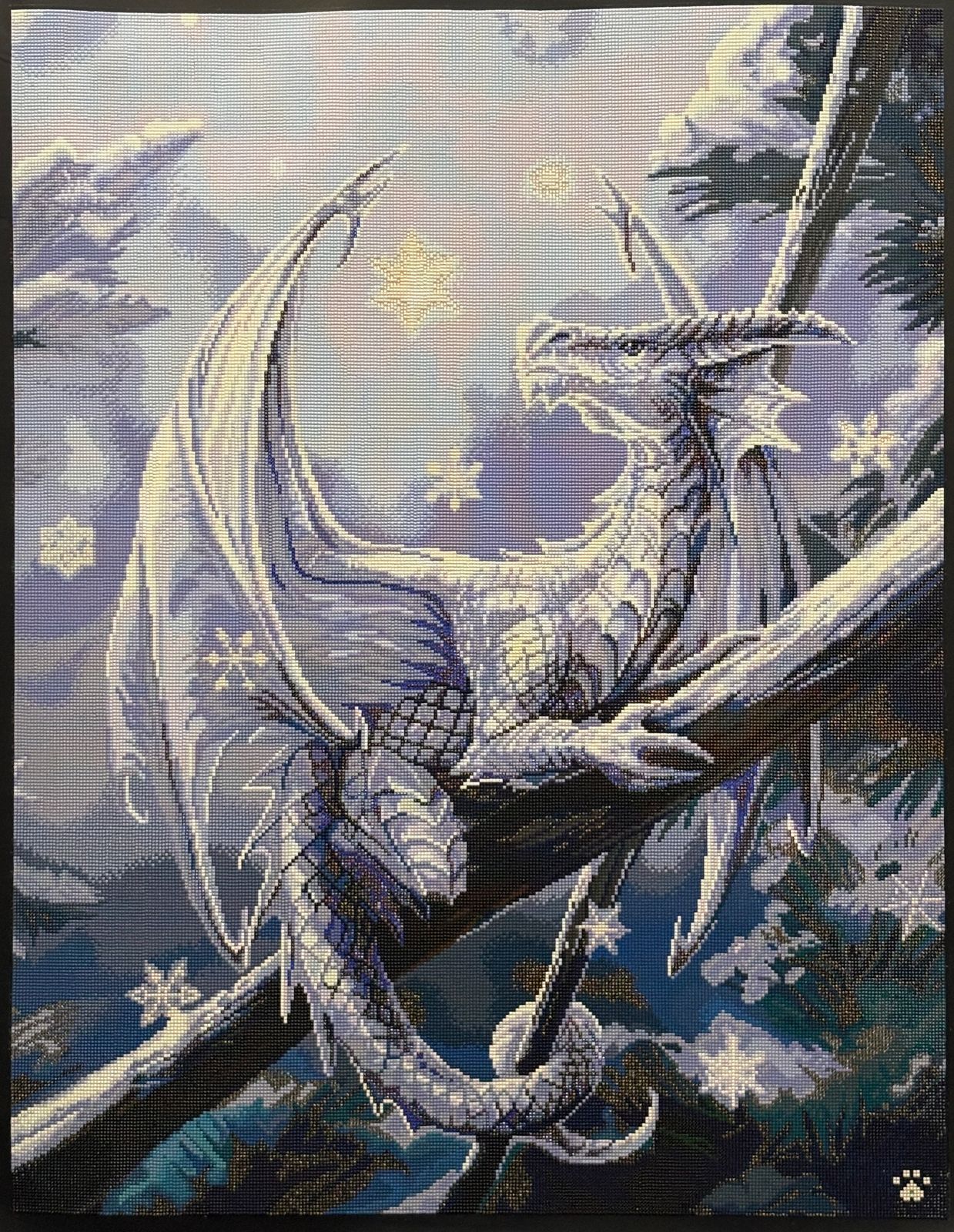 This is a very detailed artwork and I loved doing this one. I did it for my husband, who loves dragons! Picture does not do it justice!