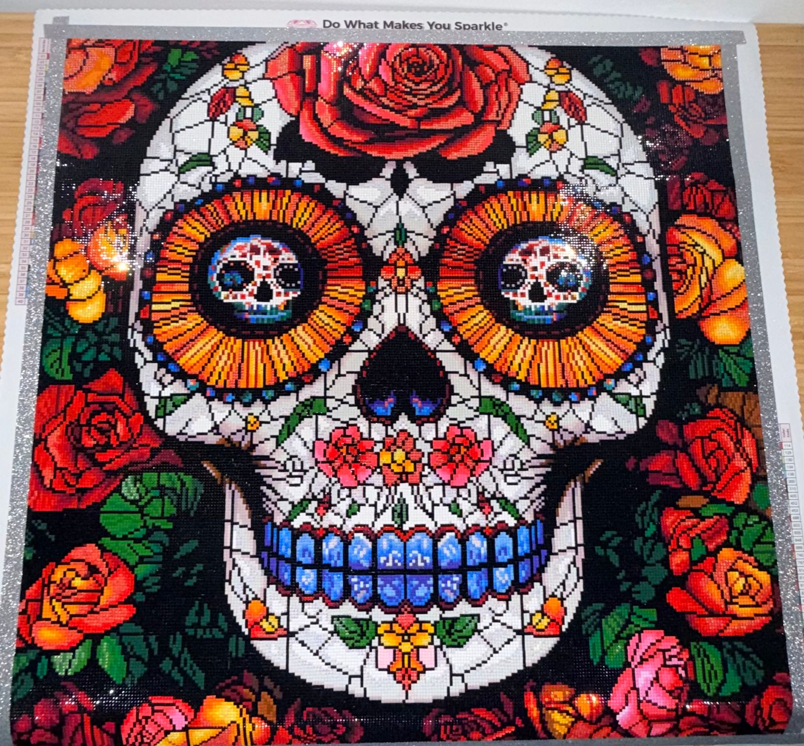 I wanted this as soon as I saw it. I love sugar skulls, the skulls inside the eyes are really cute, and the toses surrounding it are beautiful.